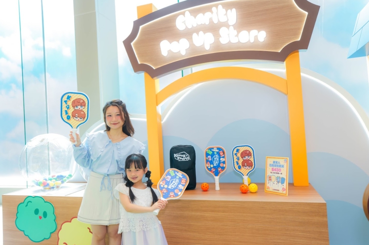 現場特設「The Keung's House Charity Pop Up Store」,獨家發售限定「姜家人匹克球拍套裝」(HK$430)。球拍以海藍色及暖黃色為基底,印有小姜小濤、元祖糖及水瀨等動畫角色,背面更有暗花圖案,設計充滿巧思。收益扣除成本後全數捐予慈善機構,延續姜濤的正能量與善心。