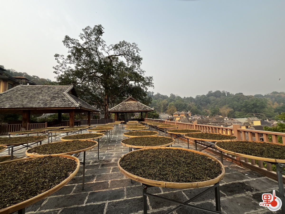 景邁山的秋天以雲海聞名,雲從山谷裏湧上來,把茶林和寨子都泡在一片白裏。我來在春季,雖沒遇上雲海,卻看到許多曬青架上鋪滿剛採的茶葉,葉片還透着一點濕氣。