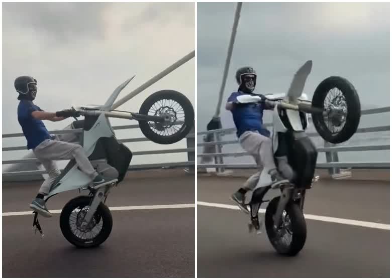 【點新聞報道】今日(5日)網上流傳短片,發帖者稱一名英國電單車發燒友,在葵青多處公路包括青馬大橋,駕駛一輛沒有掛上車牌的電單車上路,沿途大玩花式駕駛,最後被巡邏的交警目睹截停斷正。