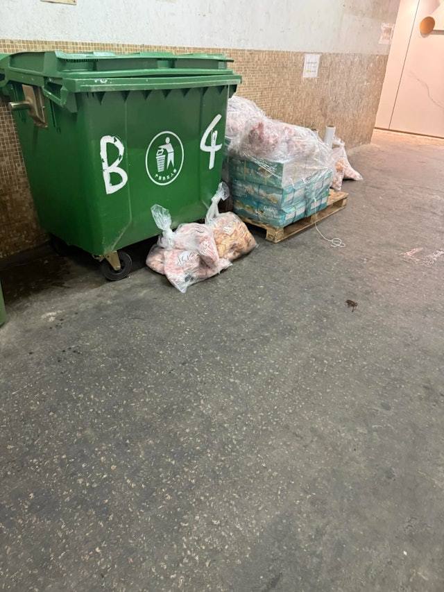 從樓主上傳的圖片可見,走廊地下放有卡板,上面堆滿以膠袋及紙箱裝載的凍肉,有部分放在垃圾桶旁。樓主稱,曾向工場職員反映,但對方「大聲發爛渣」。由於問題持續數月,令他忍無可忍,決定在網上公開事件。