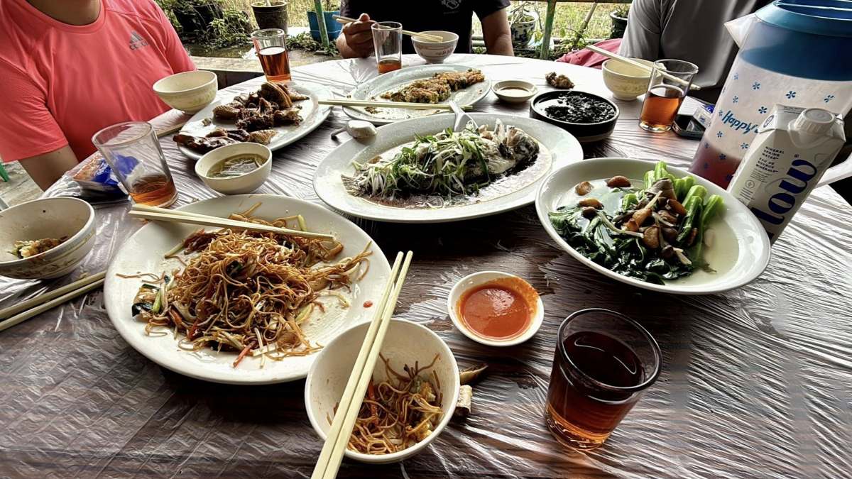 羅淑佩表示,今次由烏蛟騰行到鹿頸,大概8公里,開始行山前經過烏蛟騰抗日英烈紀念碑,也作了簡單致敬。她形容,「大半天走來密雲不雨,甚至有少許陽光,真的感恩!」圖片可見,她亦與朋友大快朵頤吃青菜、蒸魚、粉麵等美食。