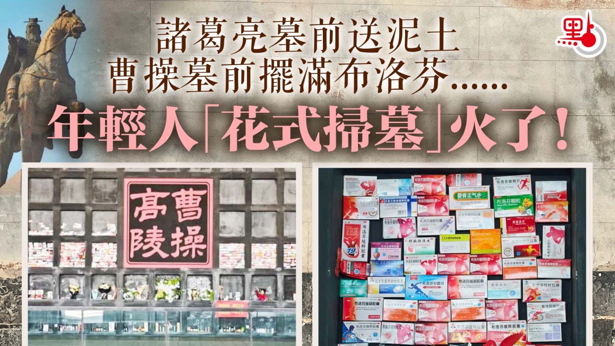 【點新聞報道】「曹丞相,若當年有布洛芬,何愁偏頭痛難愈?」清明假期期間,河南安陽曹操高陵遺址博物館內,一處特殊的「供品櫃」意外走紅社交平台。與傳統墓前的鮮花、香燭不同,這裏被一盒盒碼放整齊的布洛芬填滿,更有網友附上貼心「醫囑」,調侃「吃了布洛芬,記得不能喝酒」。事實上,這並非孤立現象——成都武侯祠諸葛亮墓前擺着來自西安的泥土,李白墓前各式美酒琳琅滿目,霍去病墓前堆滿零食與奶茶,年輕人以新潮方式對話歷史的「花式掃墓」正席捲內地,並引發各界對歷史傳承新形式的深度熱議。