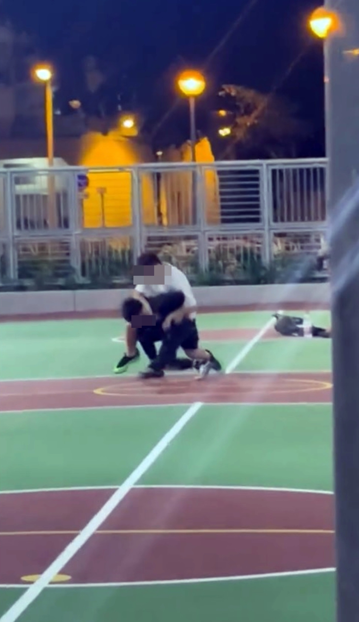 【點新聞報道】昨日(6日)晚上網上流傳一條片段,顯示兩名分別穿白衫及黑衫的男童在一個籃球場內,分持一把懷疑蝴蝶刀及一個鐵蓮花打架,期間兩人扭作一團在地上翻滾,幸最終被另一名在場的男童分開,兩人看上去並無受傷。