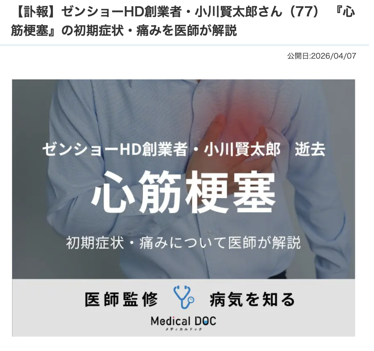 【點新聞報道】日本餐飲巨頭Zensho Holdings今日(4月7日)公布,創辦人兼會長小川賢太郎於4月6日因心肌梗塞離世,終年77歲。小川1982年創立Zensho,帶領旗下連鎖品牌食其家(SUKIYA)崛起,並透過強勢領導與積極併購,將集團發展成與吉野家並列的日本外食龍頭之一。