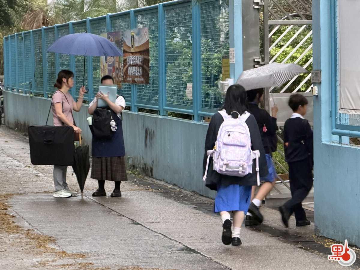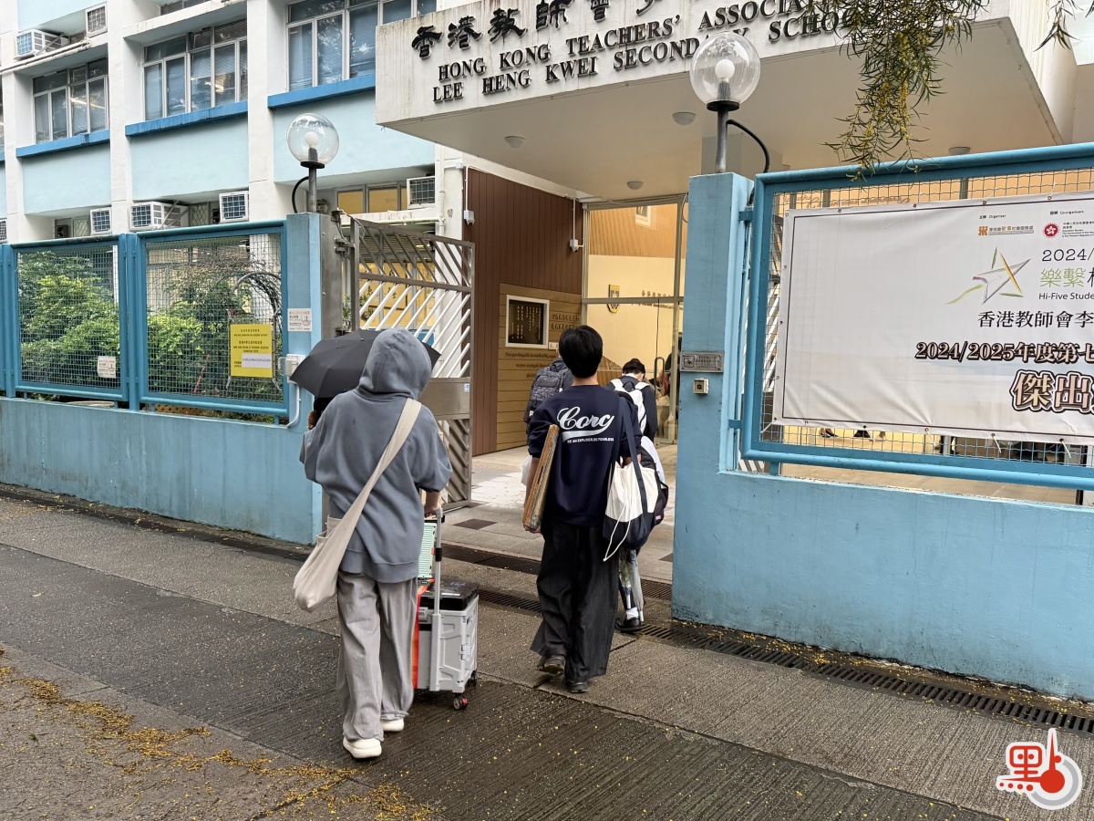 點新聞記者一早來到大埔教師會李興貴中學考點,在現場見到陸續有學生帶着畫板、筆刷等考試用具進入考場,有學生在家人的陪同打氣下「迎戰」,亦有同學彼此結伴而來,為即將進行的考試互相鼓勵。