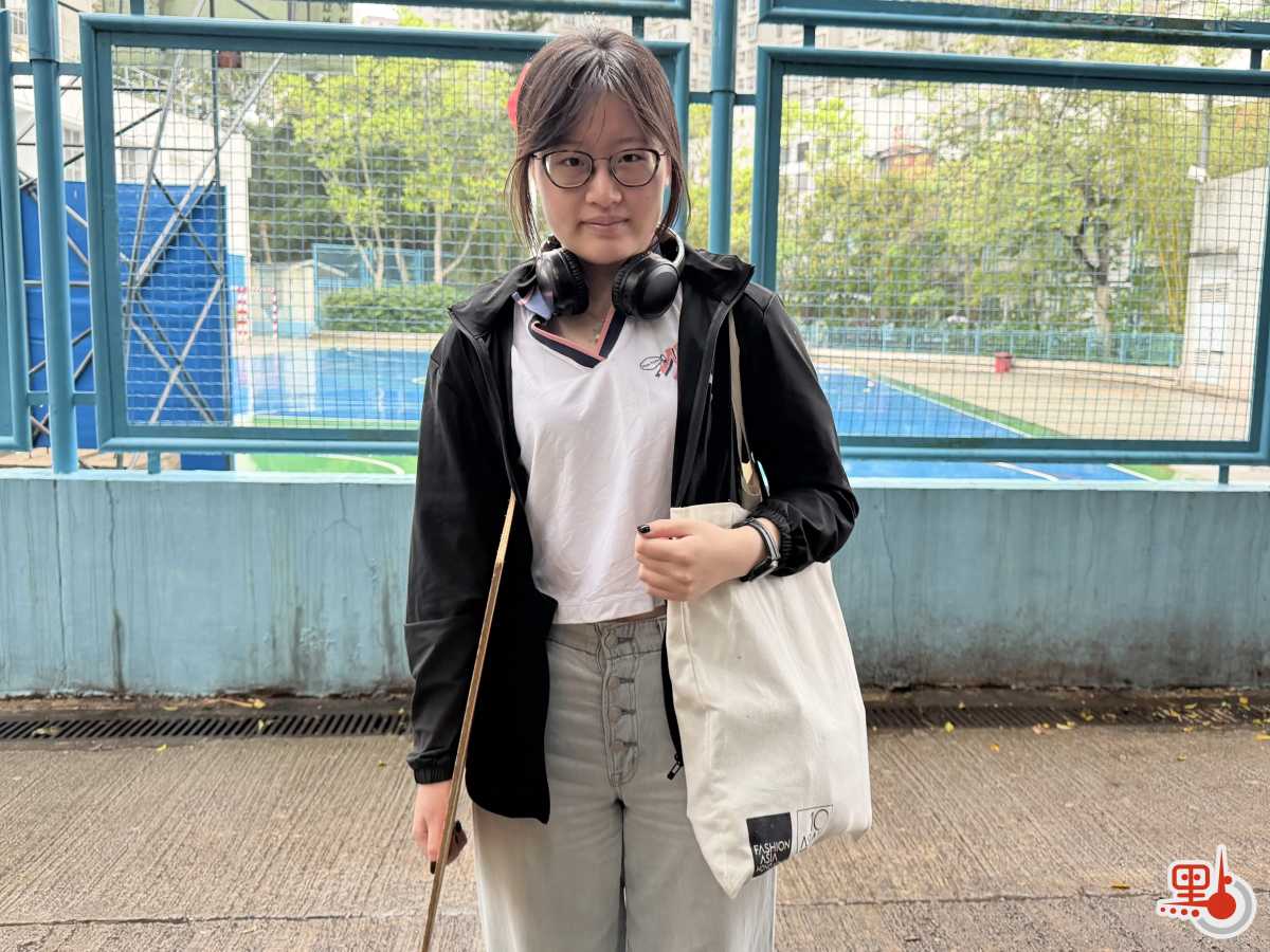 楊同學指自己「凌晨4點先瞓,有啲緊張」。她沒有對考試結果設立具體目標,認為「隨心」或能更加順利完成考試。問及今日科目結束後會如何準備其他核心科目,她則表示會繼續努力,盡力而為。