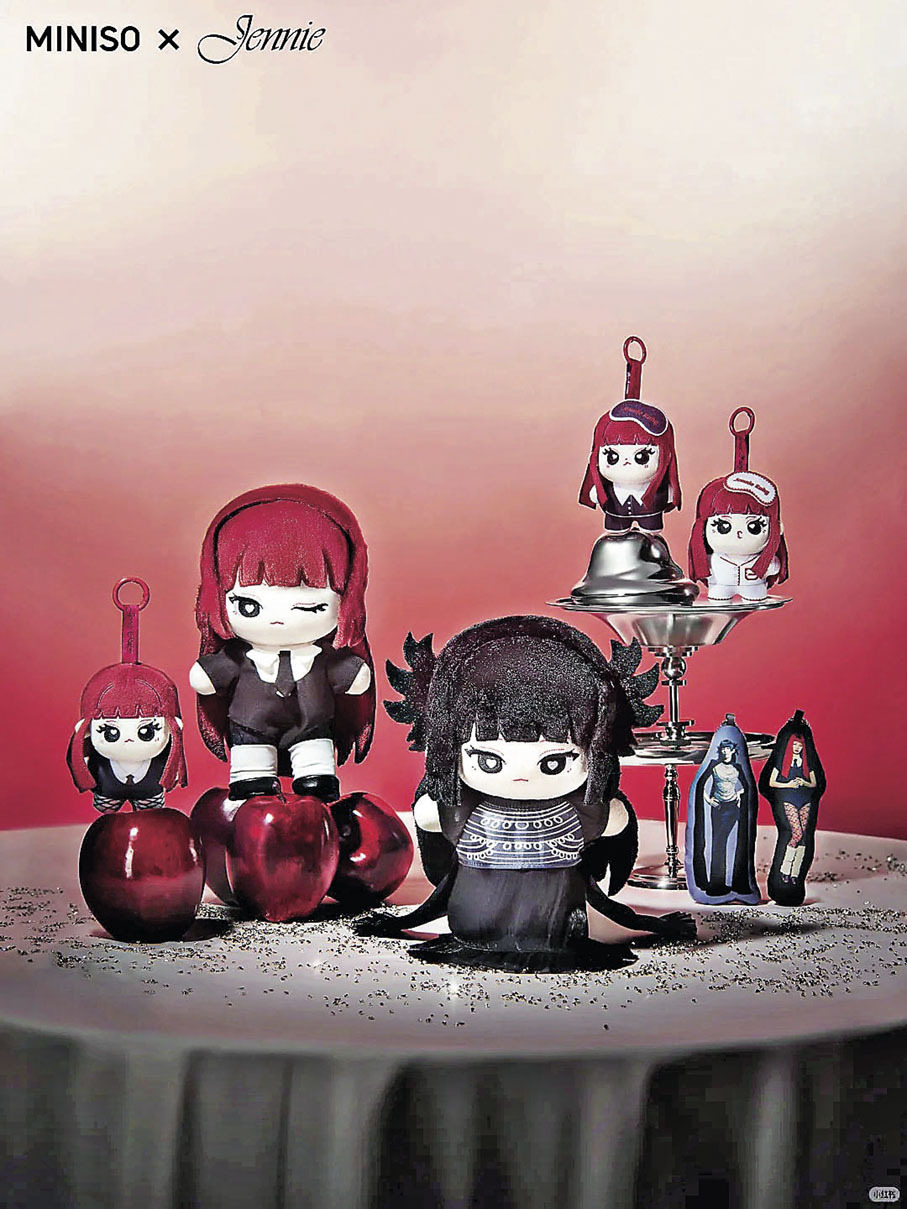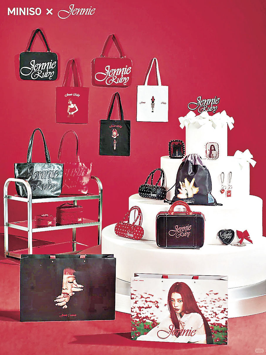 韓國女團BLACKPINK成員Jennie在全球人氣超班,早前更來港出席ComplexCon2026,精彩演出讓全場觀眾沸騰。自去年發行個人專輯《Ruby》後,Jennie就推出各類SOLO宣傳活動和周邊商品,次次都會掀起粉絲搶購。最近,她與趣味好物平台MINISO推出一系列聯名單品,還開設線下快閃店,場面人山人海。這次聯名發售超過40款周邊商品,每款都融入Jennie標誌性的《Ruby》風格:紅黑色調、Q版卡通Jennie、心形元素等。從毛絨公仔、鎖匙扣、愛心髮夾、波點手提包、化妝包、T恤等一應俱全。而且價格相當親民,大部分都是百元人民幣以下有找。