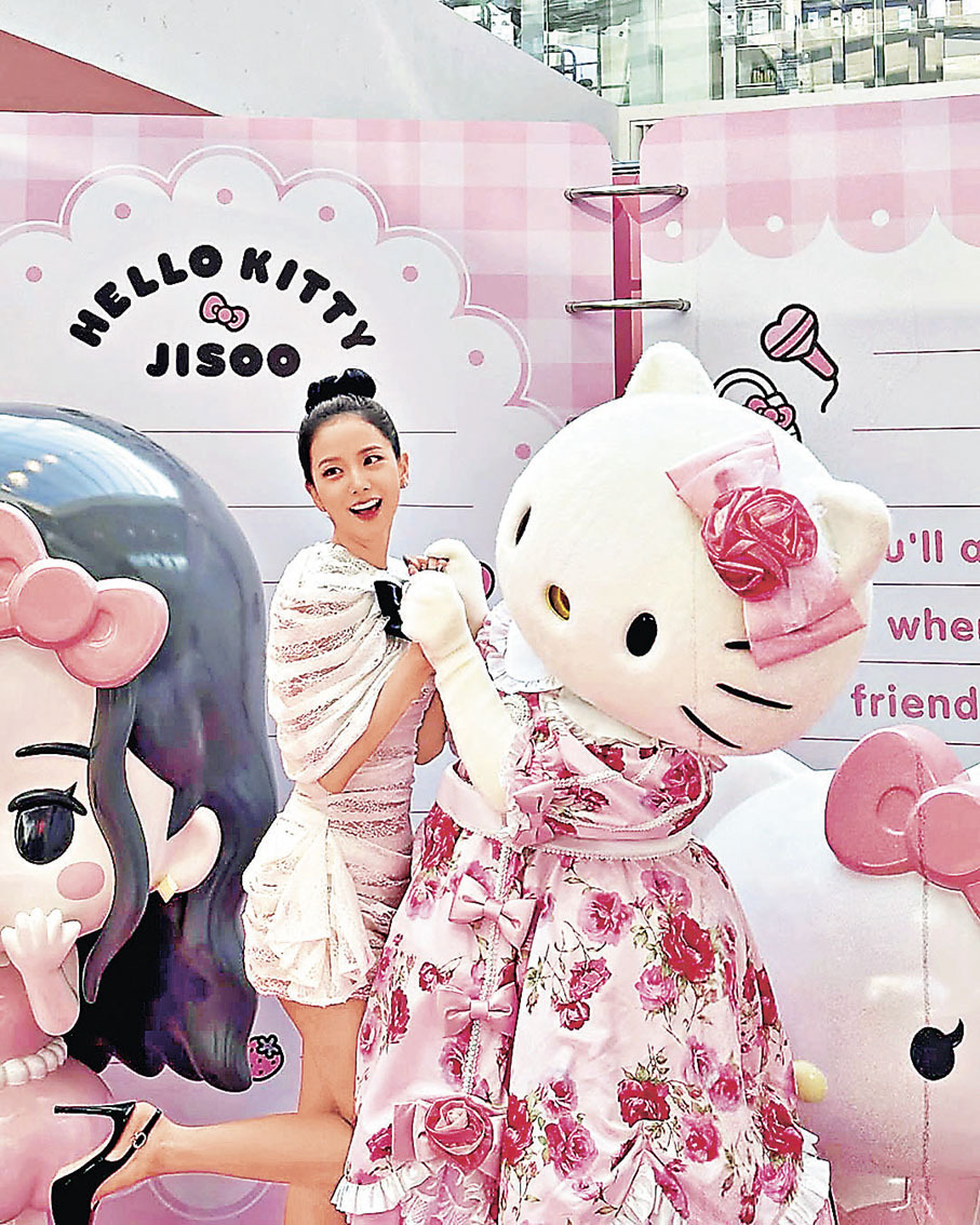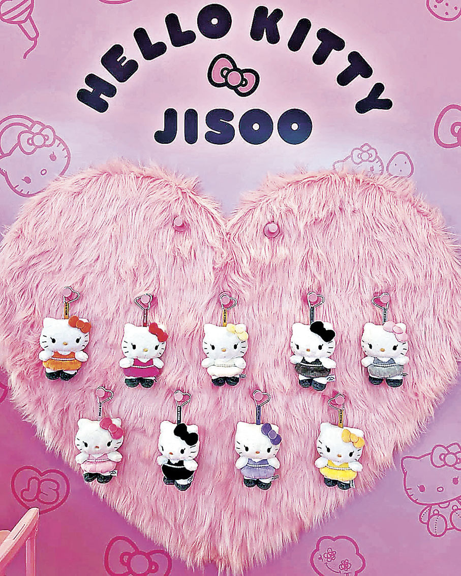 BLACKPINK另一成員Jisoo是Sanrio旗下卡通形象Hello Kitty的狂熱粉絲,擁有不少Kitty周邊,手袋上也經常掛着Kitty公仔。最近,Jisoo更成功「追星」和Hello Kitty聯名帶來可愛周邊。「JISOO×HELLO KITTY」聯名系列包含毛絨公仔鎖匙扣盲盒(含9款基本款,兩款隱藏版),還有實用周邊包括髮圈、保溫杯、室內拖鞋、馬克杯、購物袋、行李吊牌等,還有40cm限量版公仔。