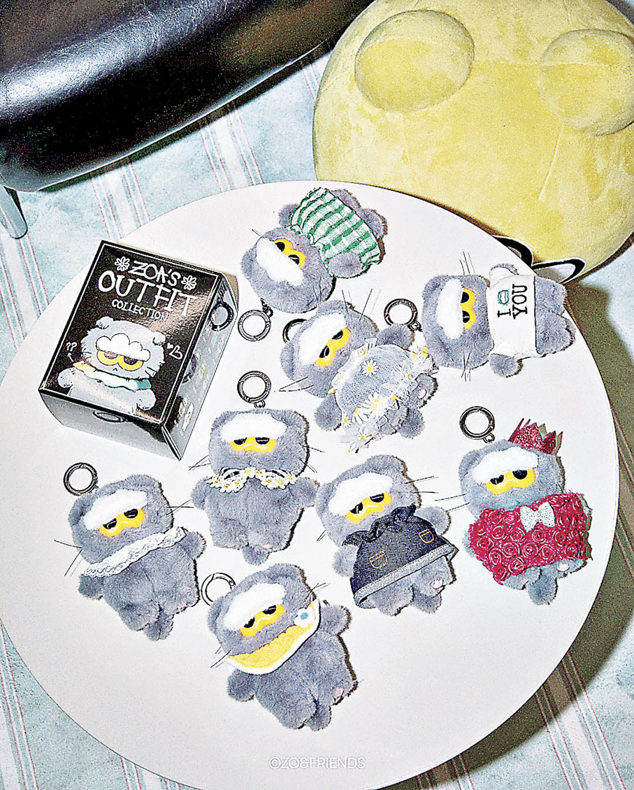 韓流天王G-Dragon攜手LINE FRIENDS推出聯名品牌ZO&FRIENDS,靈感來自G-Dragon家中灰黑色的貓貓ZOA,結合慵懶灰貓、小雛菊等角色,展現溫柔療癒與「不完美也沒關係」的獨特魅力。ZO&FRIENDS相關周邊一推出就成為爆紅潮物,早前帶着最新快閃主題「Lucky Shop」回歸。最令粉絲驚喜的新品,絕對是「ZOA造型盲盒」系列。ZOA這次上演變裝秀,8款精緻造型包括優雅蕾絲領、文青感格紋裙,還有雛菊透明裙。隱藏款是身纏玫瑰花的服裝造型,靈感來自G-Dragon《Ubermensch》演唱會最尾一首歌的歌衫。另一款公仔「ZOA俄羅斯娃娃」將不同表情與造型的ZOA由大至小層層堆疊,十分趣致。