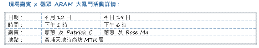 人氣電玩YouTuber蔥蔥和Patrick C,聯同近期在電視上頻頻亮相的Rose Ma,將分別於4月12日及19日現身,與粉絲近距離打機互動,大派LCK周邊福袋。