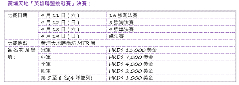 【點新聞報道】黃埔天地《英雄聯盟挑戰賽》將於4月10日至23日登陸時尚坊,期間設有一連串遊戲活動。