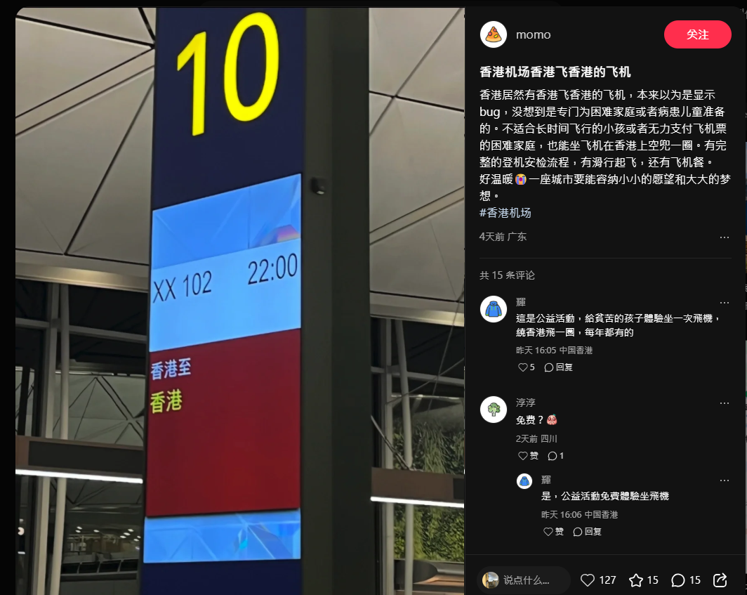 從為弱勢社群圓夢,到為心靈覓得片刻自由,「香港飛香港」這類看似「原地踏步」的航線,實則從未停止向前的步伐。這次,雖然「XX102」只是一場因系統測試引發的美麗誤會,但誤會背後的真相,恰恰讓我們看到,香港這座城市,鋼筋水泥中最柔軟的人文關懷。