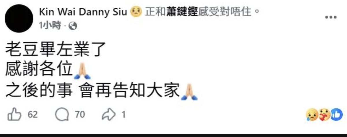 曾與蕭鍵鏗共事逾40年的楊紹鴻前日(7日)亦有留言打氣:「從未正式入行已經與你認識,和你共事40多年,老朋友,知道你現在在醫院搏鬥中,希望你可以打贏這一場硬仗!深信無論係我哋嘅同事,又或者曾經睇過你監製嘅戲嘅觀眾朋友,都一定會支持你!加油吧。」