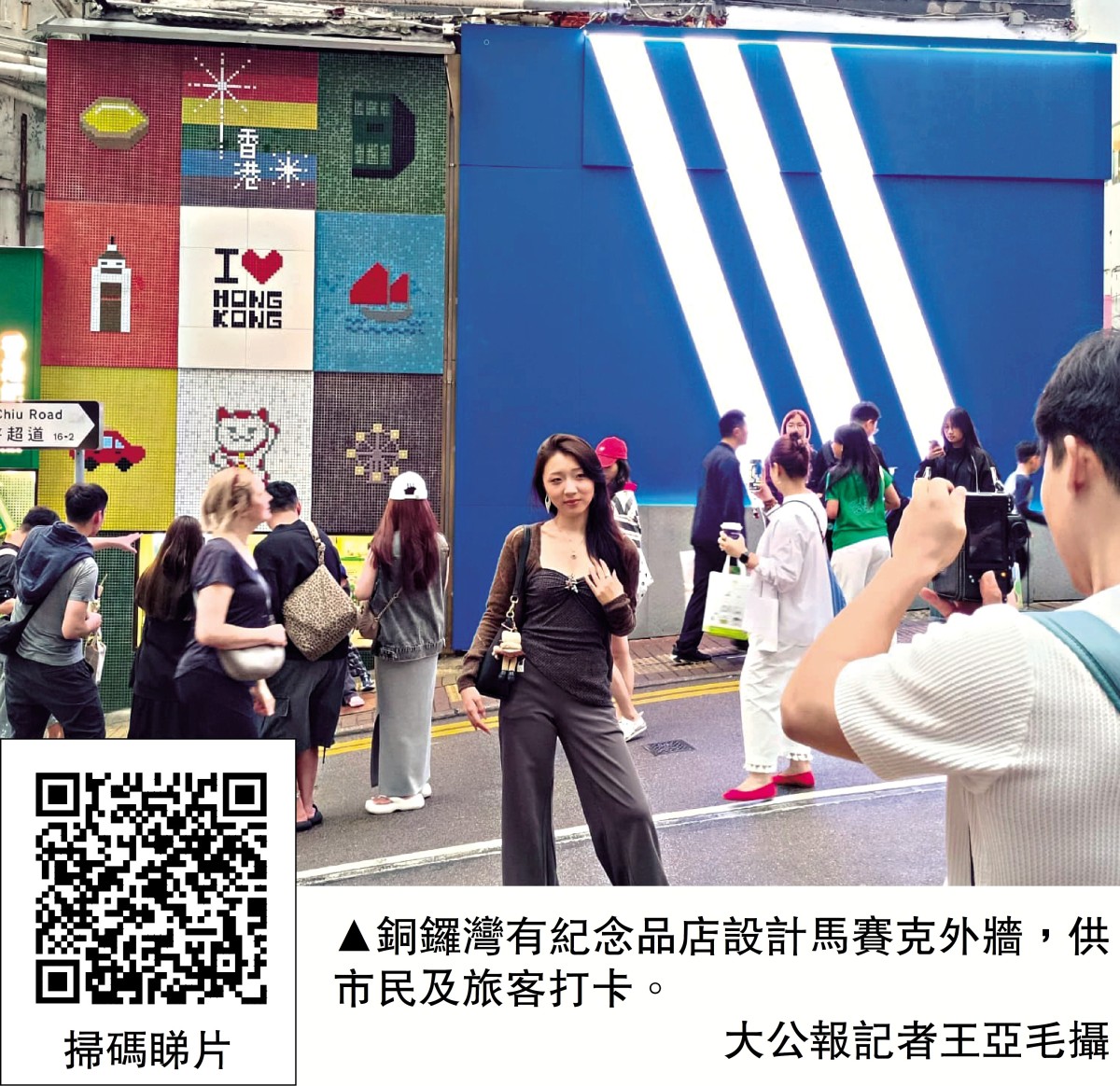 廈門旅客劉女士日前來港玩兩日,在銅鑼灣商場逛街時無意中發現這面打卡牆,感到十分驚喜,很喜歡這種有香港特色的街頭藝術。