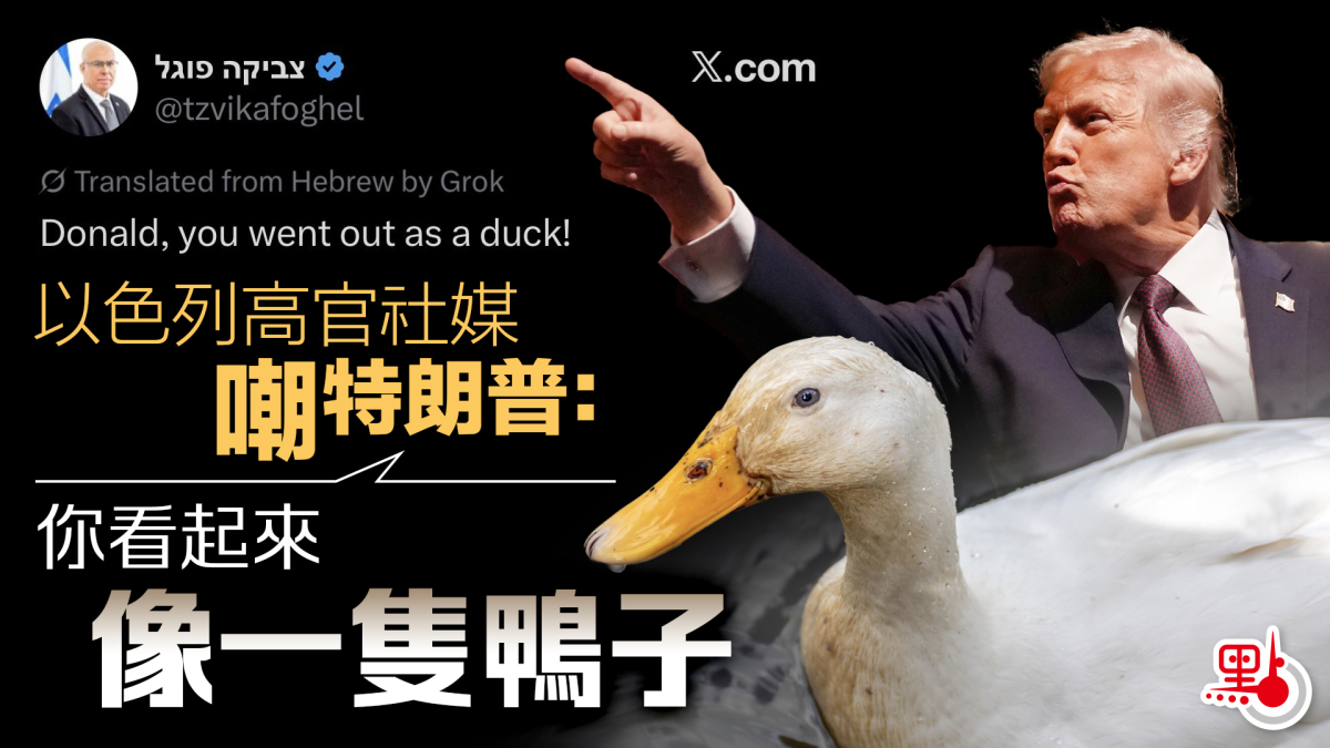【點新聞報道】據伊朗媒體及其他外媒報道,以色列國家安全委員會主席茲維卡·沃格爾在社交媒體上發帖嘲笑特朗普:「唐納德(特朗普),你看起來像一隻鴨子(意為『膽小鬼』)!」