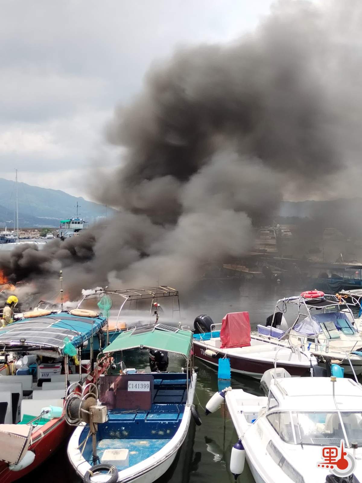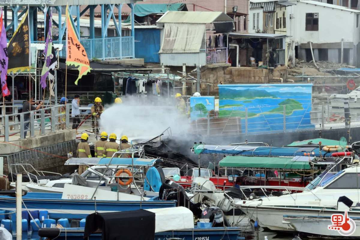 由讀者向點新聞提供現場短片可見,事發時火勢洶湧波及多艘船隻,濃煙滾滾直沖天際。現場可見其中兩隻被拖到碼頭岸邊的船隻已被嚴重焚毀入水擱淺傾側,另有兩隻船被拖到碼頭的另一邊,當中白色船身的船隻亦燒毀嚴重,另一隻藍色船身的船隻頂篷已被燒毀。消防現在調查起火原因,初步無人受傷。