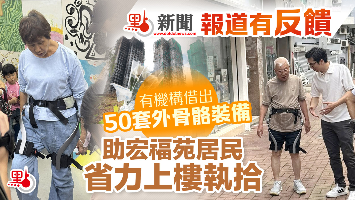 【點新聞報道】政府早前公布,將於4月20日至5月4日期間,安排宏福苑7幢受火災波及樓宇居民,按指定時間分批返回單位執拾物品。宏福苑樓高31層,對於中高層住戶而言,徒步上落數十層樓,體力上挑戰不小。點新聞4月2日刊發評論《講真D|善用「外骨骼」助宏福苑居民輕裝上樓 與家園好好告別》,建議政府安排調用外骨骼裝備,臨時借予居於中高層、有上樓需求的居民使用。評論刊發後獲得社會呼應,民間有商戶聯同非牟利機構,免費借出50套外骨骼機械裝備,協助居民上樓執拾,今日(9日)在設於大埔仁興街的「宏福客廳」供居民率先體驗。