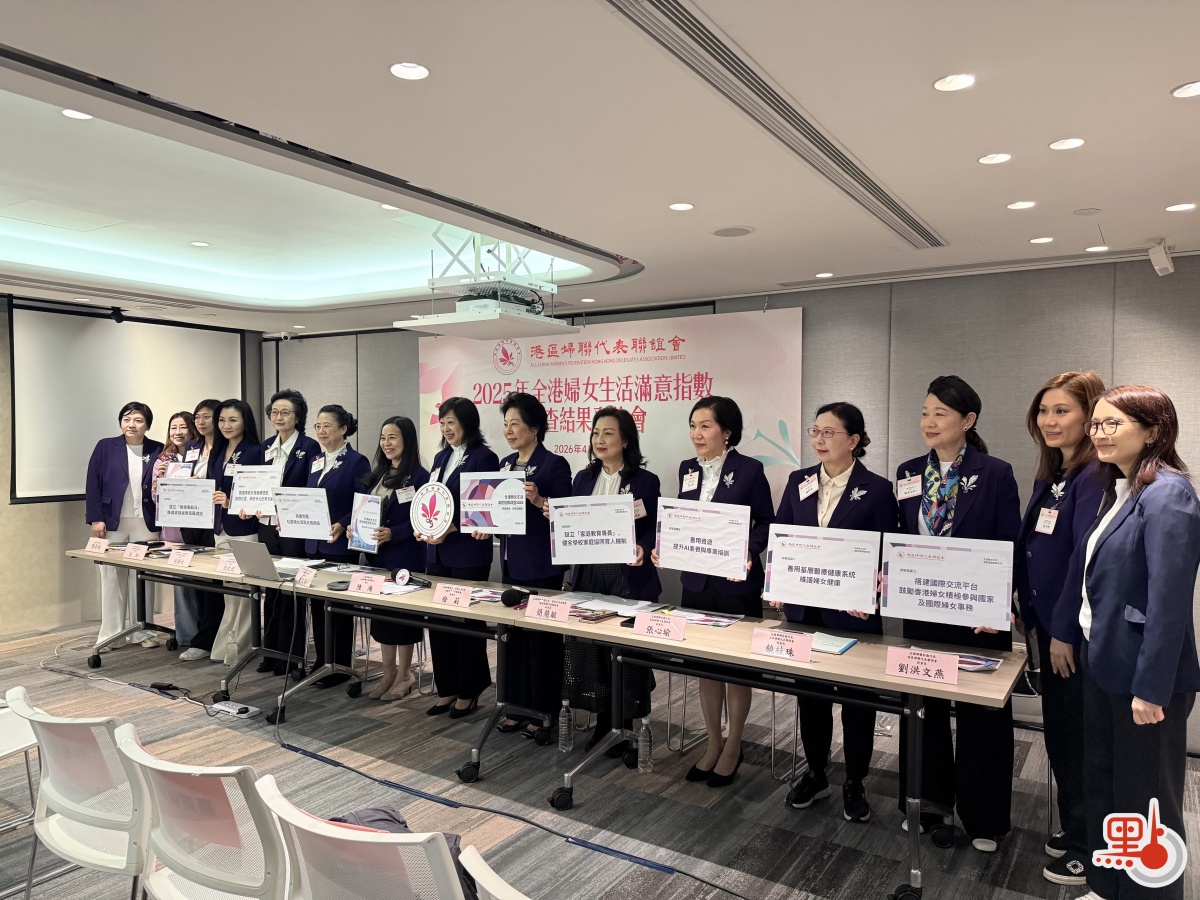 【點新聞報道】港區婦聯代表聯誼會今日(10日)發布「全港婦女生活滿意指數調查2025」詳細結果。調查顯示,2025年香港女性生活滿意度評分為5.94分(滿分10分),較2022年的5.66分增長0.28分,整體穩步上揚。