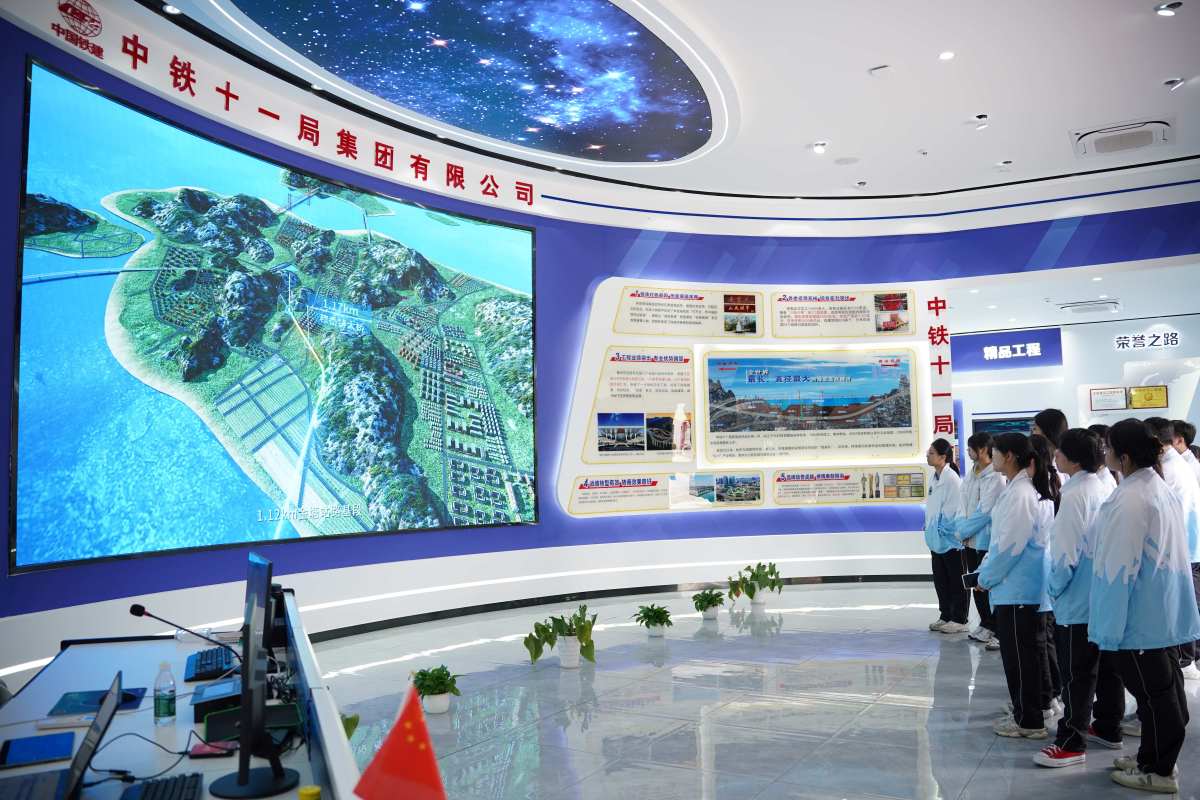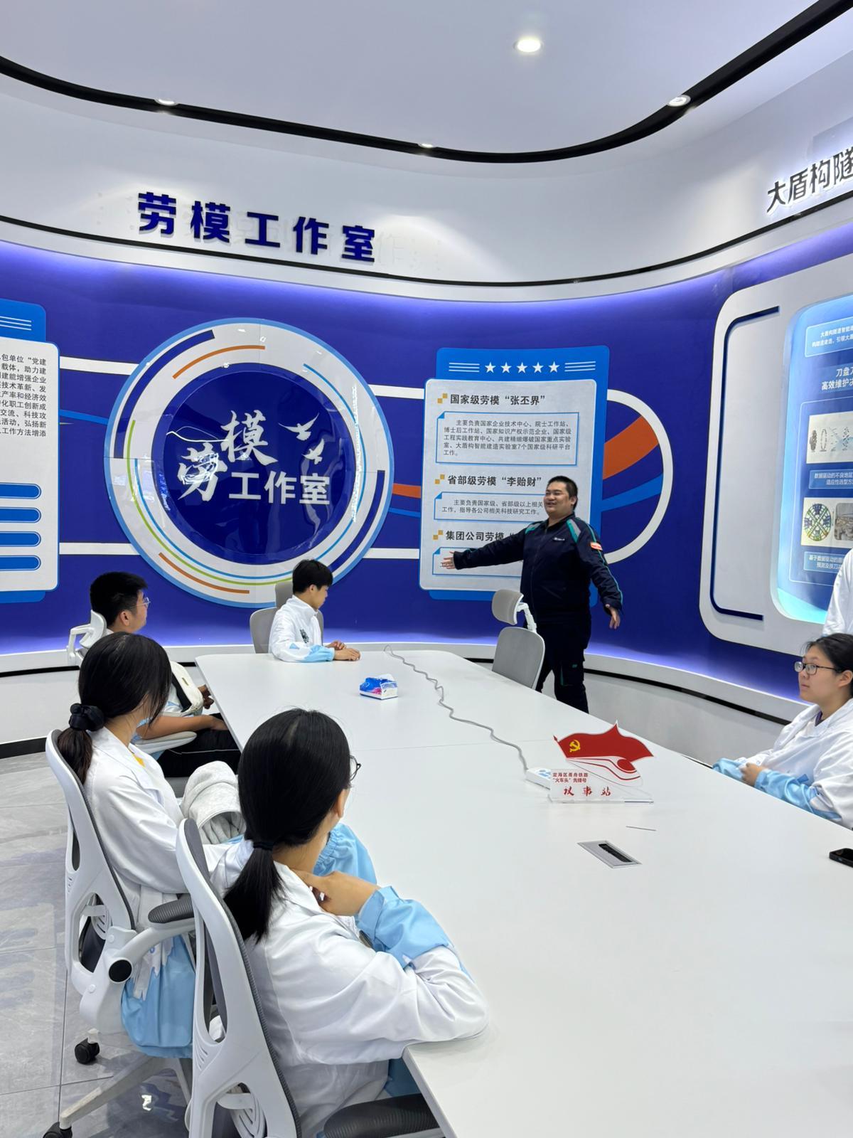 更令師生們震撼的,是隨後走進的中鐵十一局大盾構智慧中心。這裏展示的是正在建設中的甬舟鐵路金塘海底隧道——未來將成為全球最長的海底高鐵隧道。巨大的盾構機模型、智能監控系統、遠程管控平台,一項項「大國重器」讓這群香港青少年目不轉睛。
