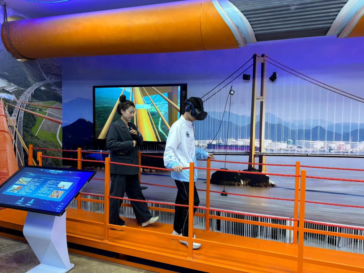 研學首站,師生們來到金塘大橋展覽館。這座連接舟山本島與金塘島的跨海大橋,全長逾21公里,曾為中國最長的懸索橋。透過詳盡的模型與影像資料,同學們了解到這項超級工程背後所克服的種種難題——複雜的海域地質、多變的天氣條件、高難度的施工技術。