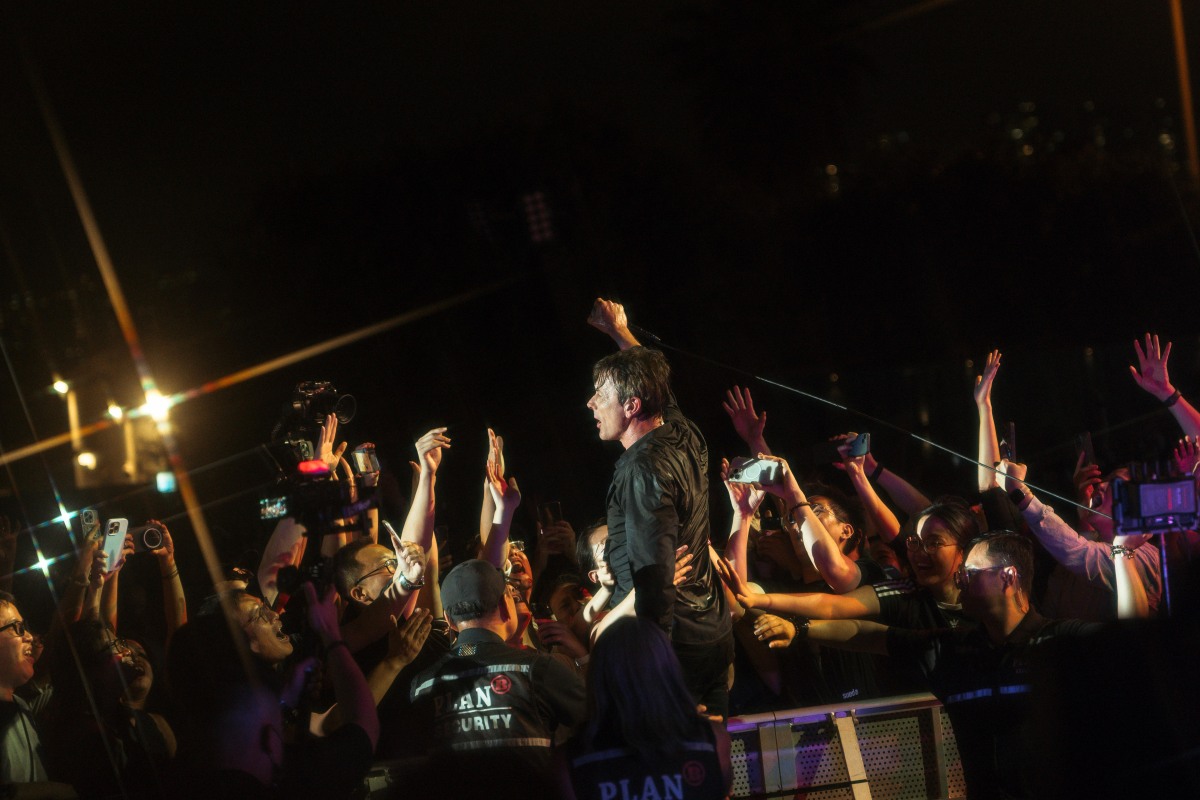 【點新聞報道】英倫搖滾樂團Suede睽違十年再度來港,《The Antidepressants Tour》香港站昨(11日)晚於西九文化區安盛竹翠公園圓滿落幕。主辦單位棋人娛樂製作早前宣布在場內設置周邊商品攤位,吸引大批樂迷提早入場搶購,不少人隨即穿上剛買到的Suede標誌T恤,為迎接偶像演出增添儀式感。