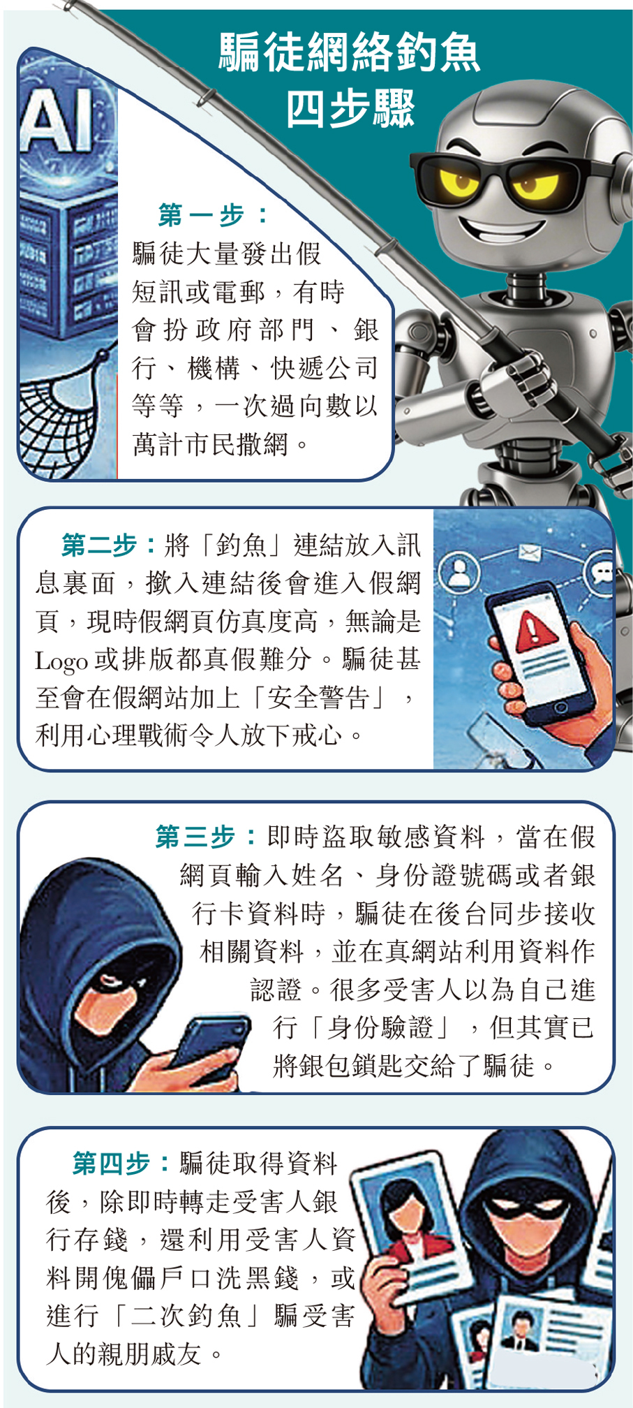 【點新聞報道】水能載舟,亦能覆舟。隨着人工智能(AI)興起,不法之徒的騙局也變得更高智能。香港去年整體科技罪案宗數按年下跌約6.9%,但損失金額卻上升23.2%,其中滲透市民日常生活的「釣魚」騙案數字,跌幅約六成,惟損失金額增加逾一倍,反映網絡罪案「貴精不貴多」,正向高度針對性、高度破壞力方向發展。警方分析發現,「釣魚」攻擊向三方面進化,包括騙徒以低成本網購「釣魚套件」配合自動化工具,大規模生成和發布海量詐騙短訊;針對受害人「量身訂造」個性化行騙「劇本」;最後是利用人工智能「深偽技術」增強仿真度,更精準、更逼真行騙,令機構員工或市民防不勝防。去年就有一名會計員中招,令公司損失1,900萬元。