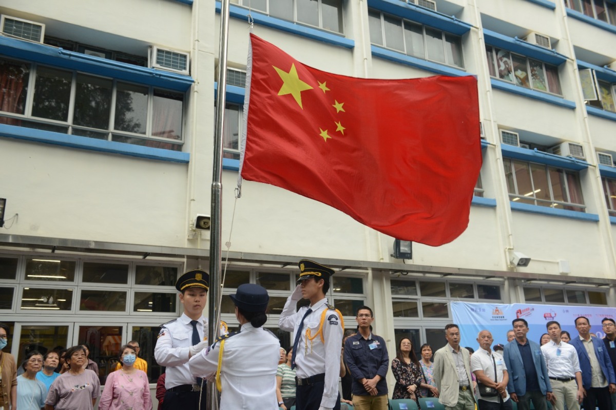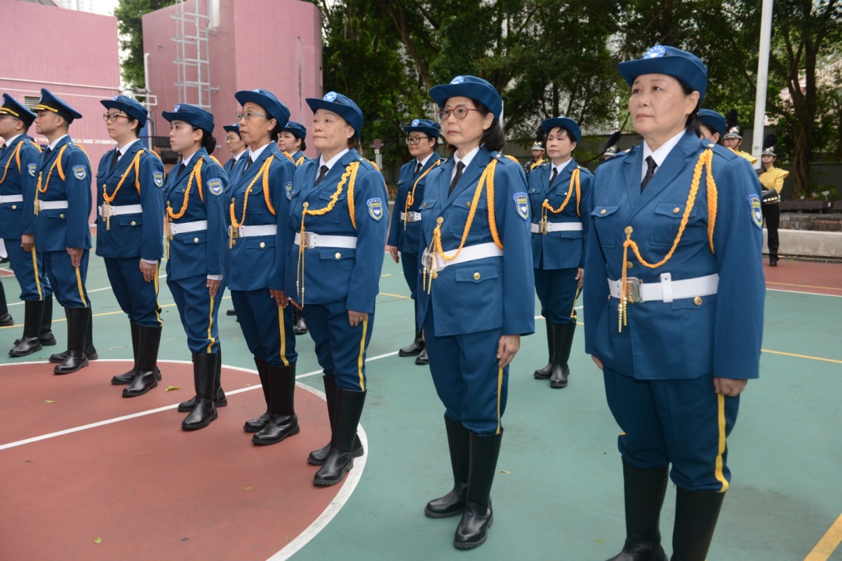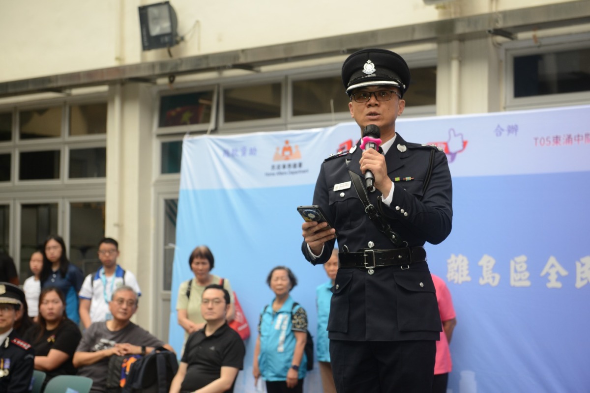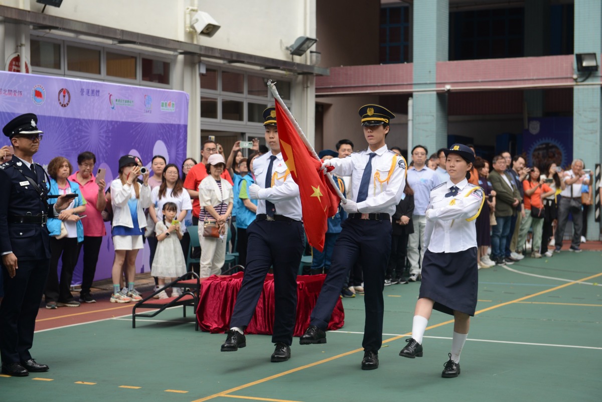 參與隊伍以標準中式步操列隊進場,步伐整齊、態度莊嚴,充分展現青年學子與社區團隊的昂揚風貌。離島婦聯主席劉淑嫻區議員致歡迎辭,表示活動旨在提高社會各界對國家安全的重視與認知,增強國民身份認同與歸屬感。關愛隊組建國旗護衛隊,積極在社區推廣中式步操,引導市民遵守法律、維護國家主權,切實實踐「國家安全,人人有責」。