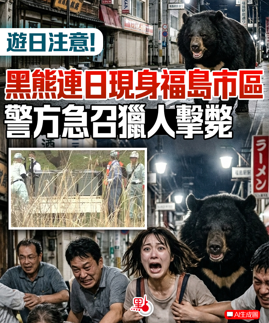 綜合日媒報道,警方6日起不斷接到有關野熊在郡山市出沒的報案,涉事黑熊7日遭驅趕遁入山林,但在翌日上午約7時下山,還遊蕩到兩所學校附近,涉事的一所中學與一所小學因此緊急停課。而黑熊隨後再度沿途北上。
