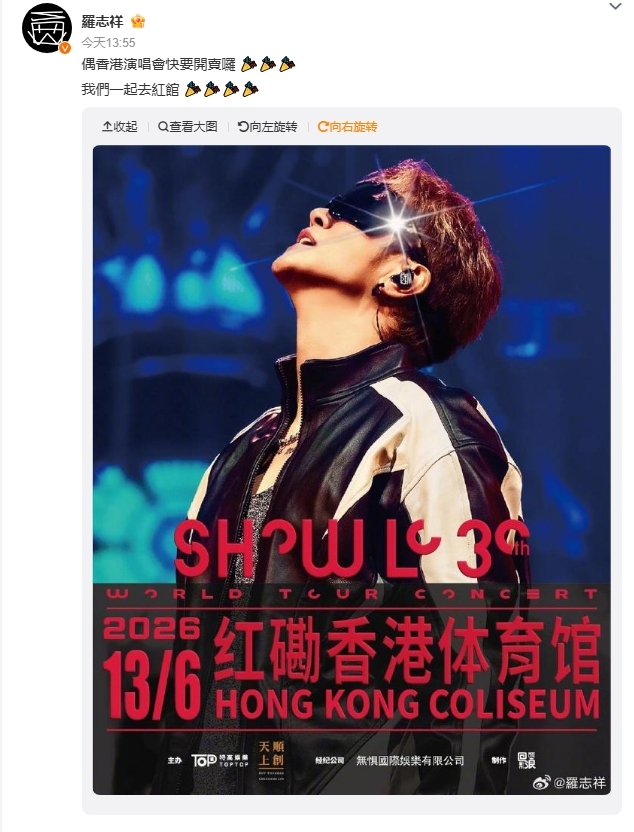 4月12日,羅志祥在個人社交媒體賬號發布最新消息,確認6月香港紅館演唱會計劃,現場畫面顯示其黑眼圈減輕、精神良好。14日中午,其個人微博還更新了香港演唱會信息。