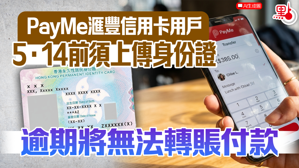 【點新聞報道】PayMe用戶注意!今年5月14日前,所有使用滙豐信用卡增值的用戶,必須上傳香港身份證資料,否則指定日期後將無法使用付款、繳費等一系列功能。