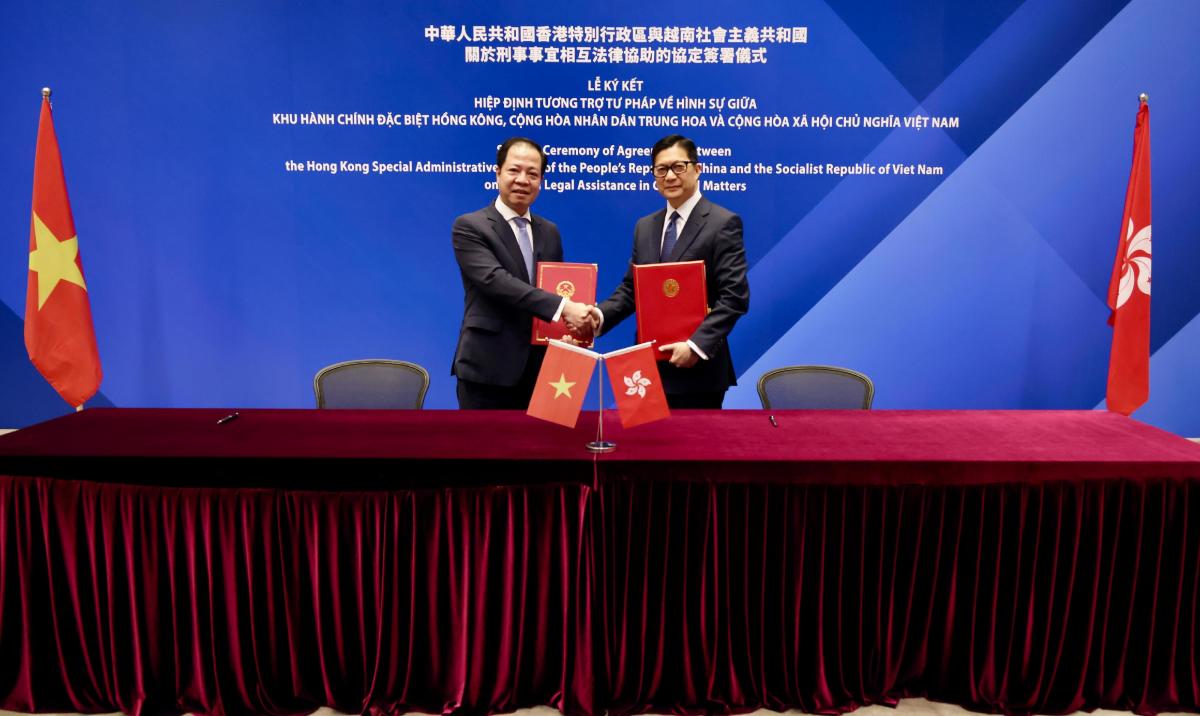 【點新聞報道】保安局局長鄧炳強與越南最高人民檢察院副檢察長陳海軍今日(14日)分別代表香港特區及越南,簽署關於刑事事宜相互法律協助的雙邊協定。