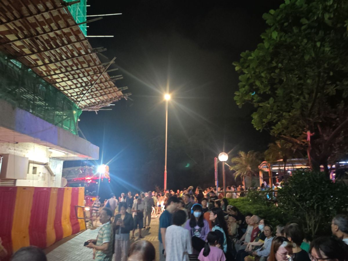 【點新聞報道】柴灣峰華邨曉峰樓目前正進行搭棚圍網工程,今日(14日)晚上約9時許,大廈火警鐘突然響起,疑似有單位發生火警。消防人員接報後迅速到場處理,大批居民亦緊急疏散至樓下暫避。