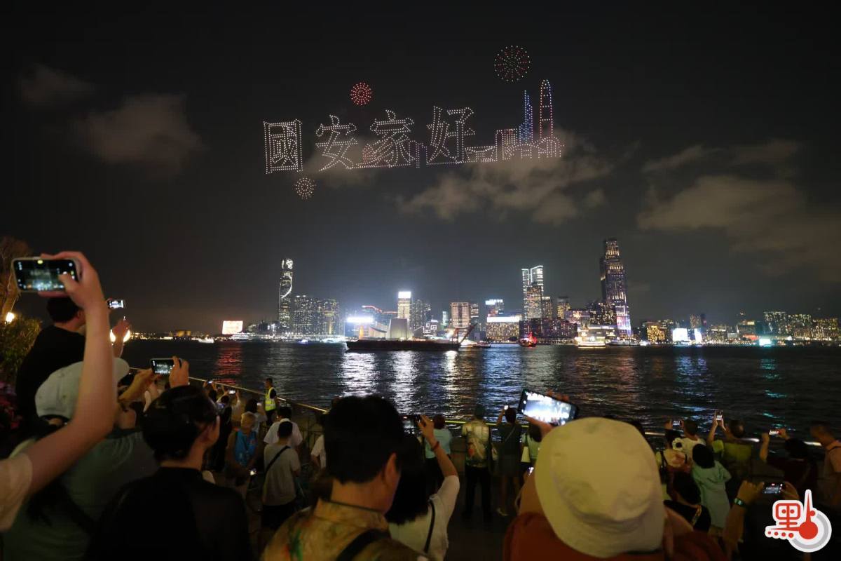 【點新聞報道】今日(15日)是「全民國家安全教育日」,紫荊文化集團在灣仔舉行大型無人機表演,增強市民大眾的國家安全意識。表演分為兩場,分別在晚上8時及9時半開始,每場約15分鐘,吸引不少觀眾與親友到場觀看及拍照留念。