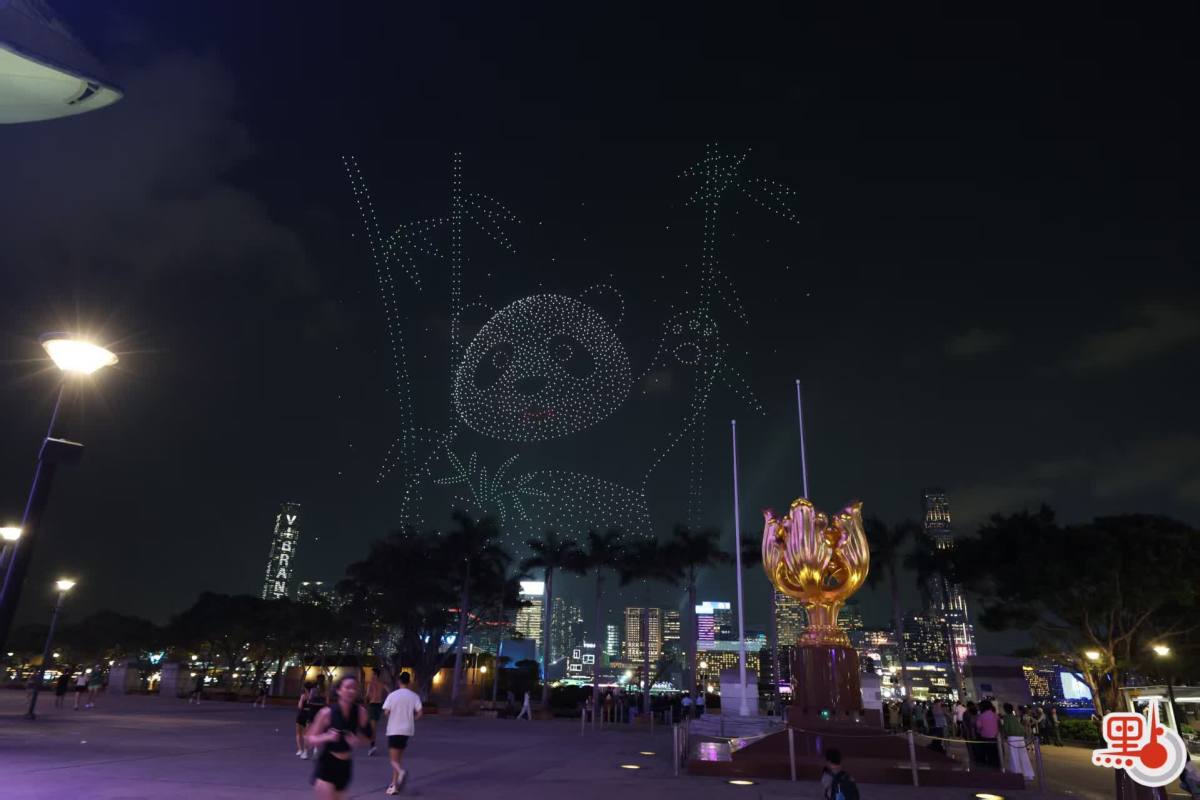約2000架無人機在維港上空升起,以動感光影藝術,演繹本港青年學生以國家安全為主題創作的作品,包括國寶大熊貓、長城與金龍、中華白海豚躍出海面等。表演尾聲則以維港背景連同「國安家好」字體作結。