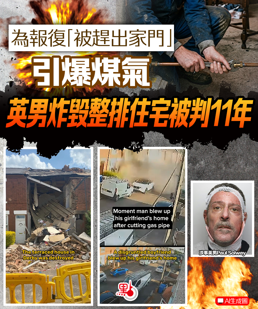 【點新聞報道】為報復女友竟引爆煤氣?英國一名男子因不滿被女友趕出家門,情緒失控,引爆煤氣洩憤,結果炸毀整排住宅。近日判決出爐,男子被判11年有期徒刑。
