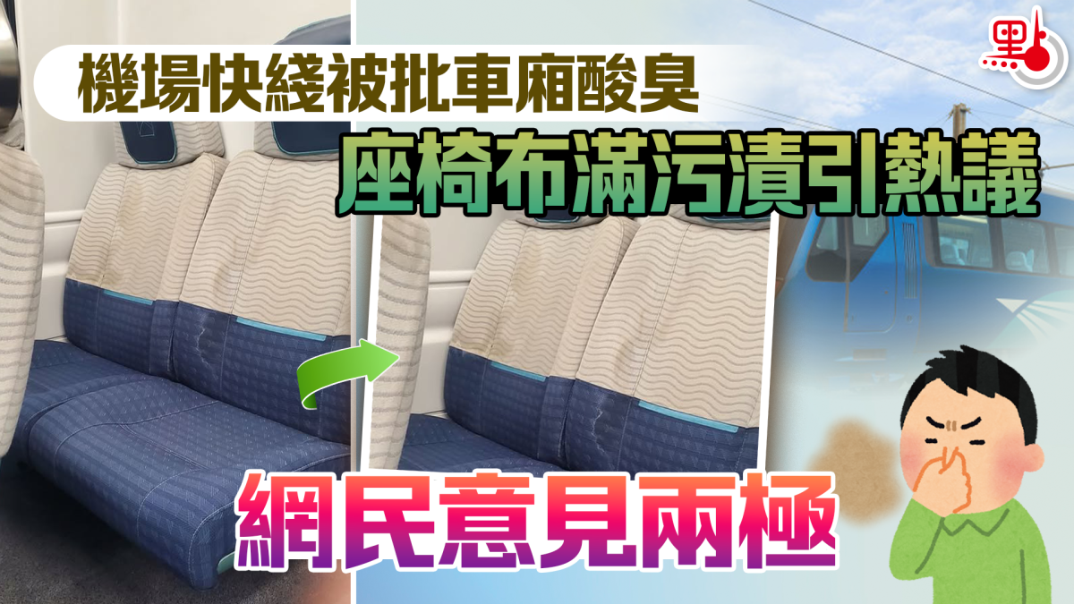 【點新聞報道】近日有網民於網上發文抱怨,稱搭乘機場快綫時車廂內散發酸餿味,座椅上布滿污漬,更聞到強烈尿味,引發網上熱烈討論。
