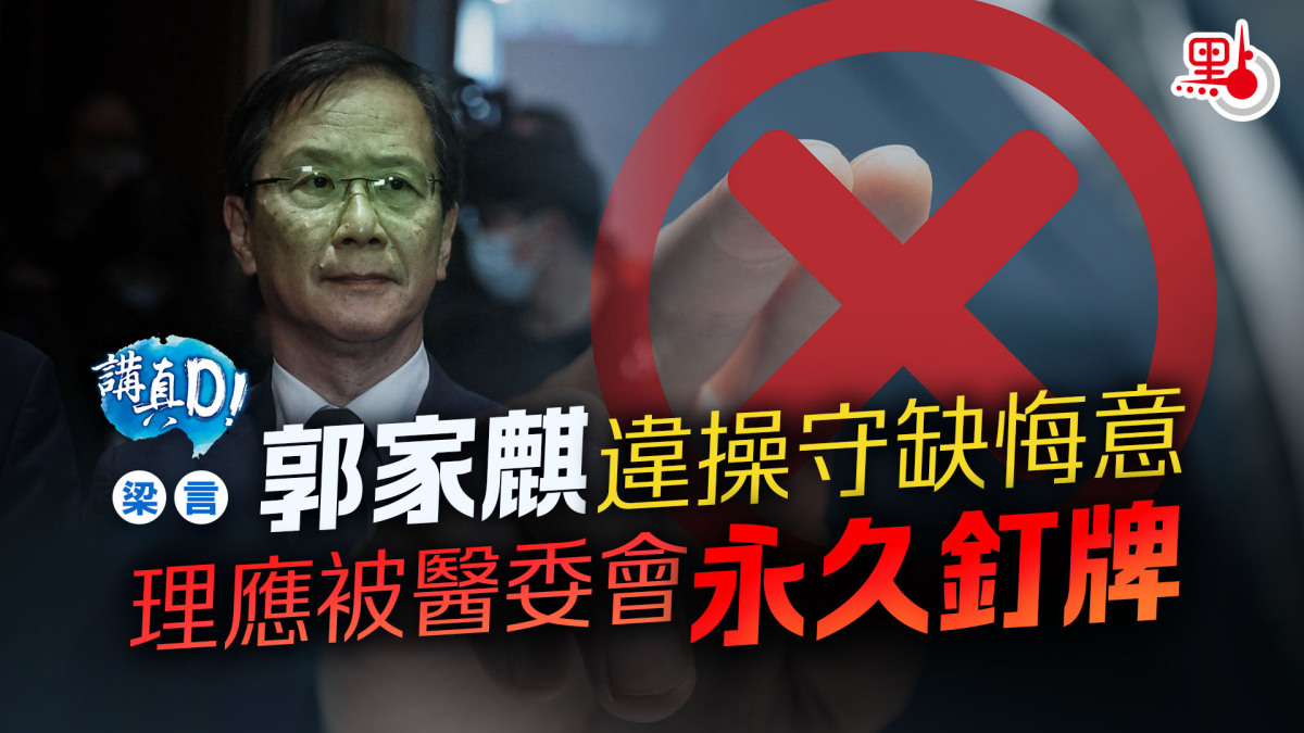 綜觀不同的報道,社會不難看到,郭家麒基本上沒有展露出悔意,除了在公開平台辯稱這不是「專業過失」,而是因為參與「初選」定罪,在研訊過程中,又聲稱自己是「雞蛋對高牆」。筆者認為,郭家麒是在玩弄文字遊戲,沒有「專業上過失」,但他絕對是「專業地失德」;自比為「雞蛋」或什麼都好,根本也不能掩飾他犯下嚴重罪行的事實。如果違法了,有悔意的人會及時認錯,如果犯錯了還擺出一副「無關專業」、「我在對抗」的姿態,醫委會裁定他永久釘牌,是唯一及必須的決定。醫生的專業、誠信操守,一定要盡力維護,任郭家麒如何辯解,他的確曾經危害到議會甚至社會的安全穩定。