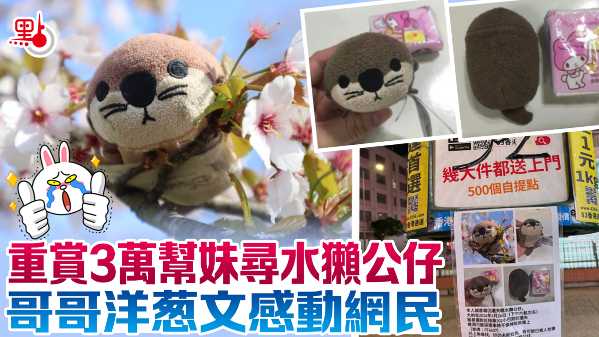 【點新聞報道】好有愛!近日一名19歲大學女生於社交平台threads發「懸賞尋公仔」帖文,透露上月底乘小巴遺失一隻陪伴10年的水獺公仔「糰糰」,願重酬1萬元報答拾獲人士。惟時隔三周糰糰仍音信杳然,女生的哥哥不忍見妹妹以淚洗面,遂發文詳述來龍去脈,並將酬金加碼至3萬元,希望獲有心人幫助。帖文感動不少網民,齊齊集氣加油,盼最終可「一家糰聚」。