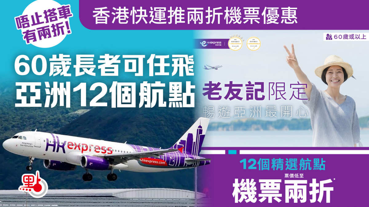 【點新聞報道】香港快運(HK Express)今日(17日)宣布,推出「60+老友記限定兩折優惠」,由即日起至4月20日晚上11時45分,年滿60歲或以上的香港及澳門居民,於HK Express指定優惠訂購專頁預訂航班,並於2026年4月27日至2026年10月24日期間出發,即可享優惠票價購買來回機票。