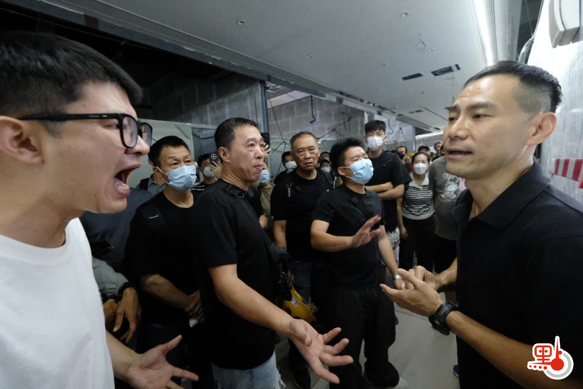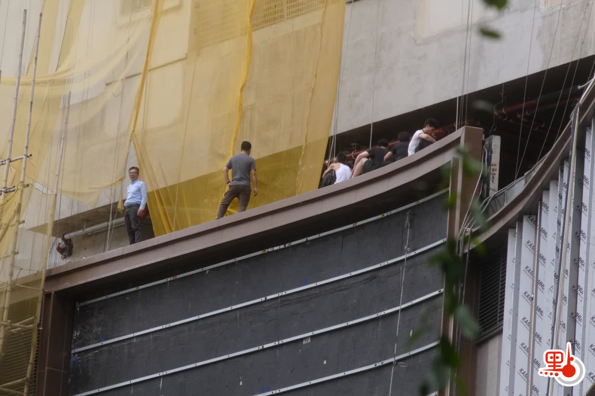 警員接報到場調查期間,一名工人登上約5樓高平台位置危站,消防員需要開啟救生氣墊戒備,但未幾再有6名工人登上平台危險位置拉橫額,消防員需要開啟第二個救生氣墊,警方談判專家到場進行遊說,勞工處人員聯絡相關人士了解處理;警方暫列作「勞資糾紛」案處理。