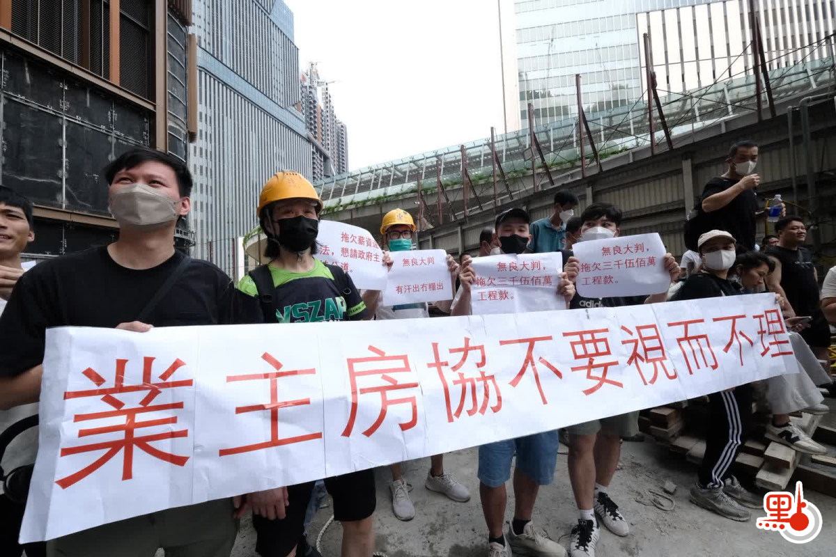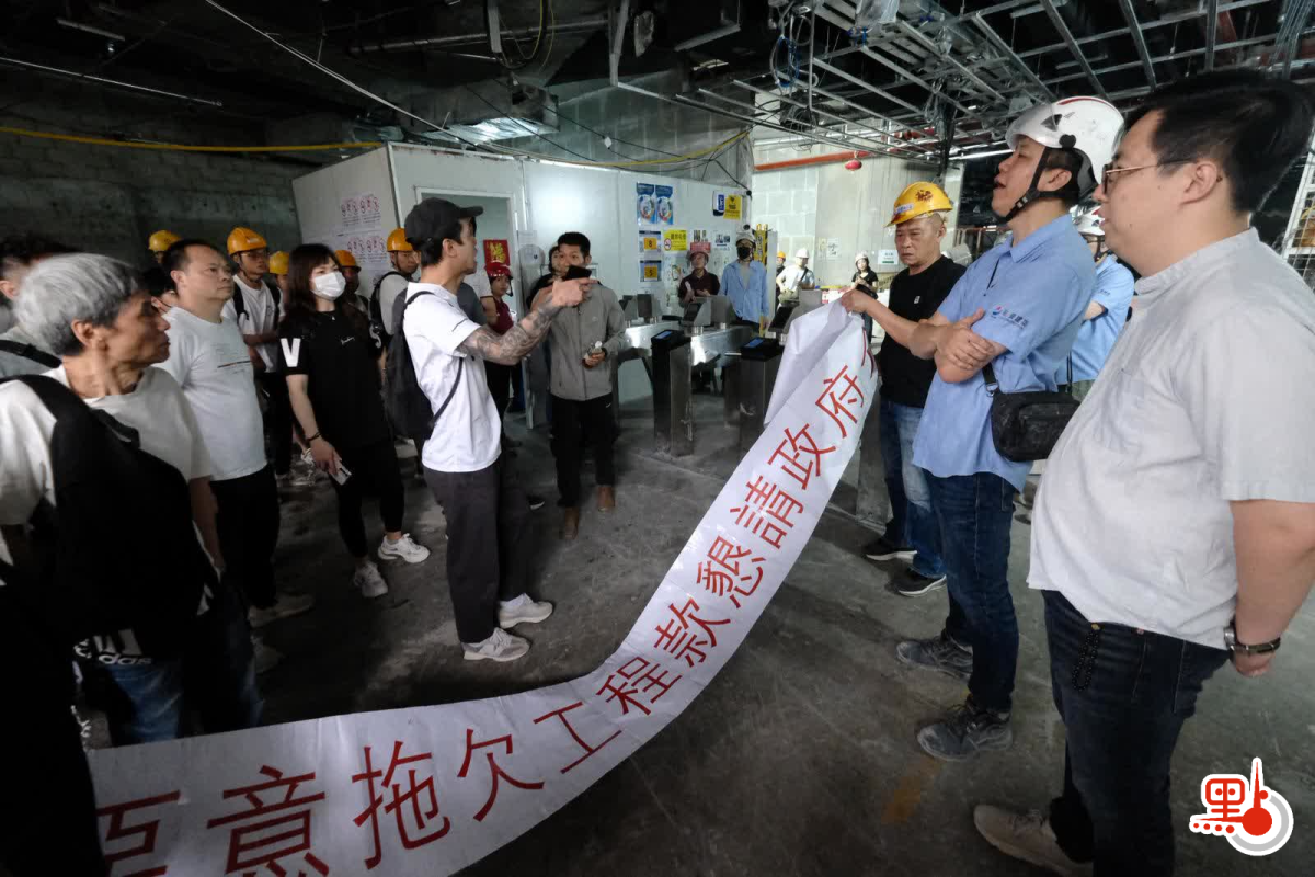 【點新聞報道】今日(17日)早上9時許,逾百名工人到達啟德沐縉街一地盤外聚集持標語及拉橫額追討合共數百萬元欠薪,其間約50名工人進入地盤抗議。