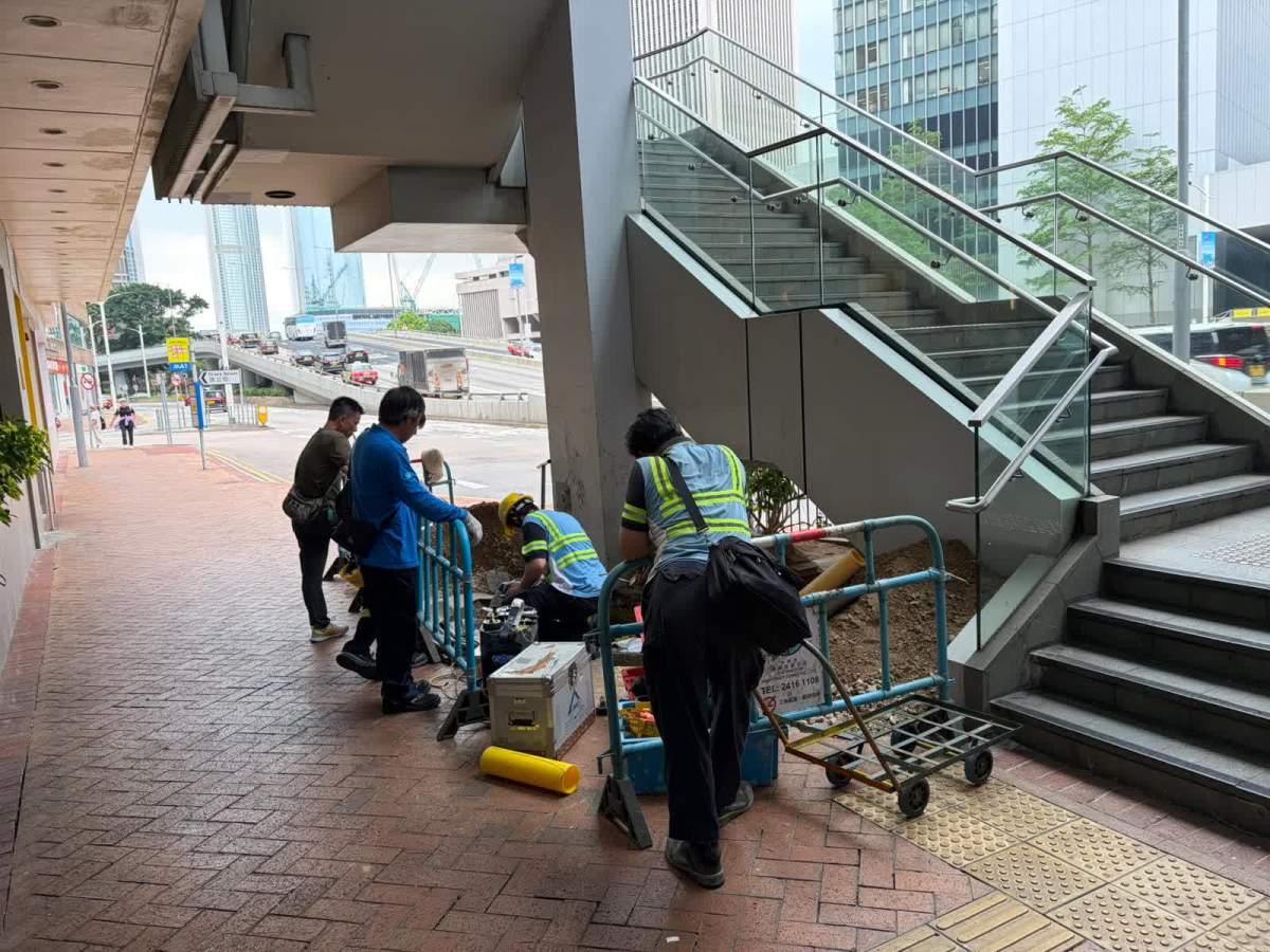 煤氣公司昨日指,經工程團隊搶修後,昨日區內受影響客戶的燃氣供應已大部分恢復,但人員清理燃氣管道積水工作仍然持續,爭取今日(17日)全面恢復供氣。點新聞記者今日在現場所見,續有煤氣公司的工程人員在遠東金融中心附近進行緊急維修。