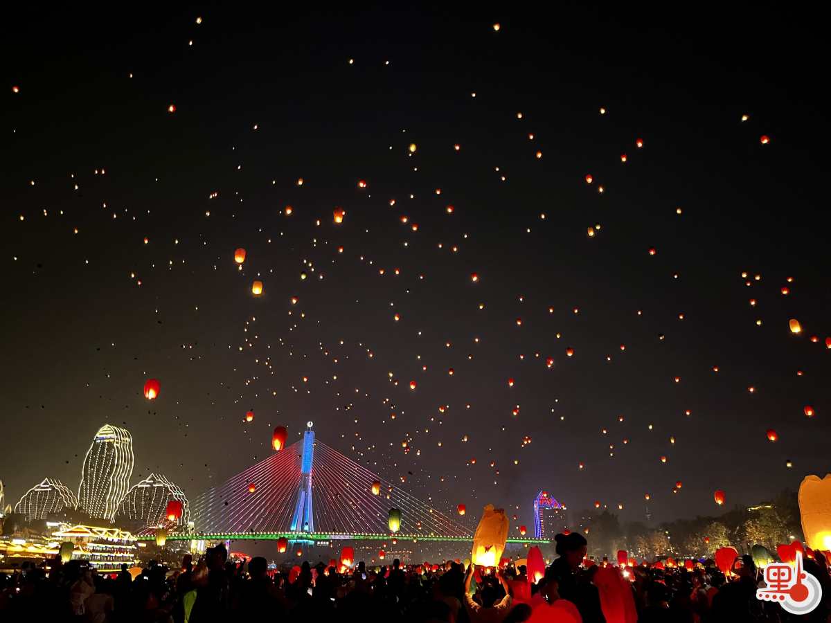 入夜後,一盞盞荷花水燈放上水面,順着流慢慢走遠,燈光在河上輕輕搖晃。夜空裏,孔明燈一個接一個升起——當地還會放一種由傳統傣紙與竹編製成的巨型孔明燈,象徵去舊迎新。民間也陸續開始放燈,等火苗升溫,讓紙燈慢慢鼓起來,再徐徐放開手掌。成百上千盞紙燈在江邊冉冉升起,那一夜,機場暫停航班,把天空留給祝福。