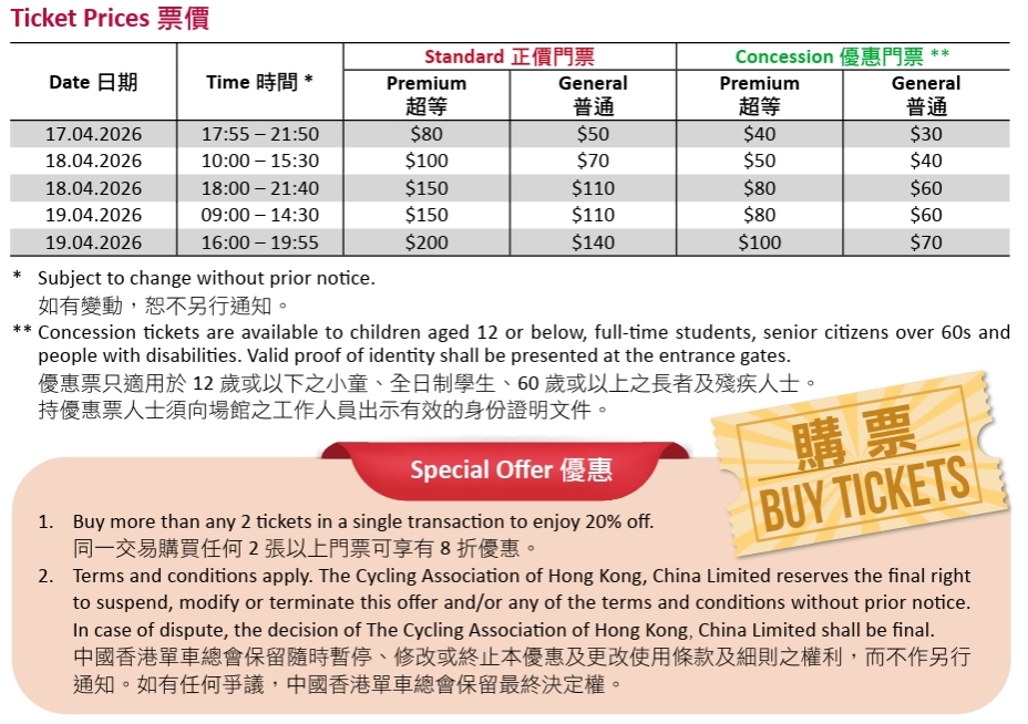 票價:港幣$50至$200;優惠門票港幣$30至$100