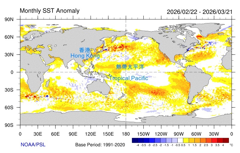 據香港天文台3月更新消息,在過去個多月,赤道太平洋中部及東部海面溫度上升並整體維持接近正常水平。綜合最新的海洋觀測資料及世界各地多個氣候模式的預測,預計該區將於2026年春季及夏季持續其升溫趨勢。該區海面溫度預料於今個春季會處於正常至偏高範圍,並於今年下半年有機會發展為厄爾尼諾事件。
