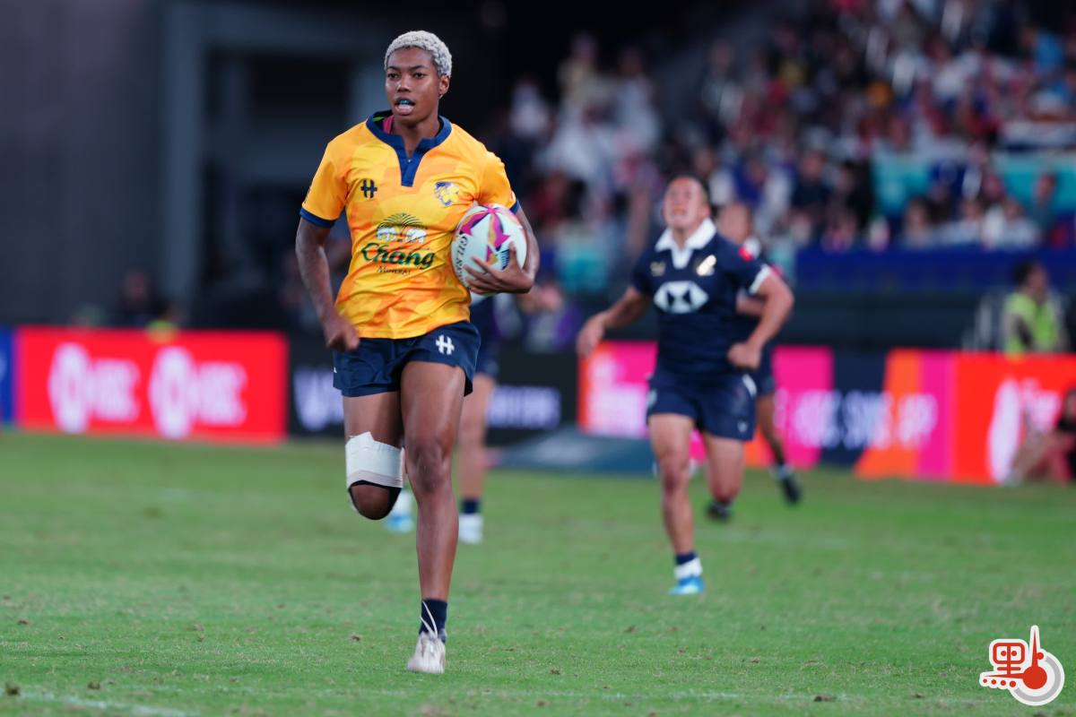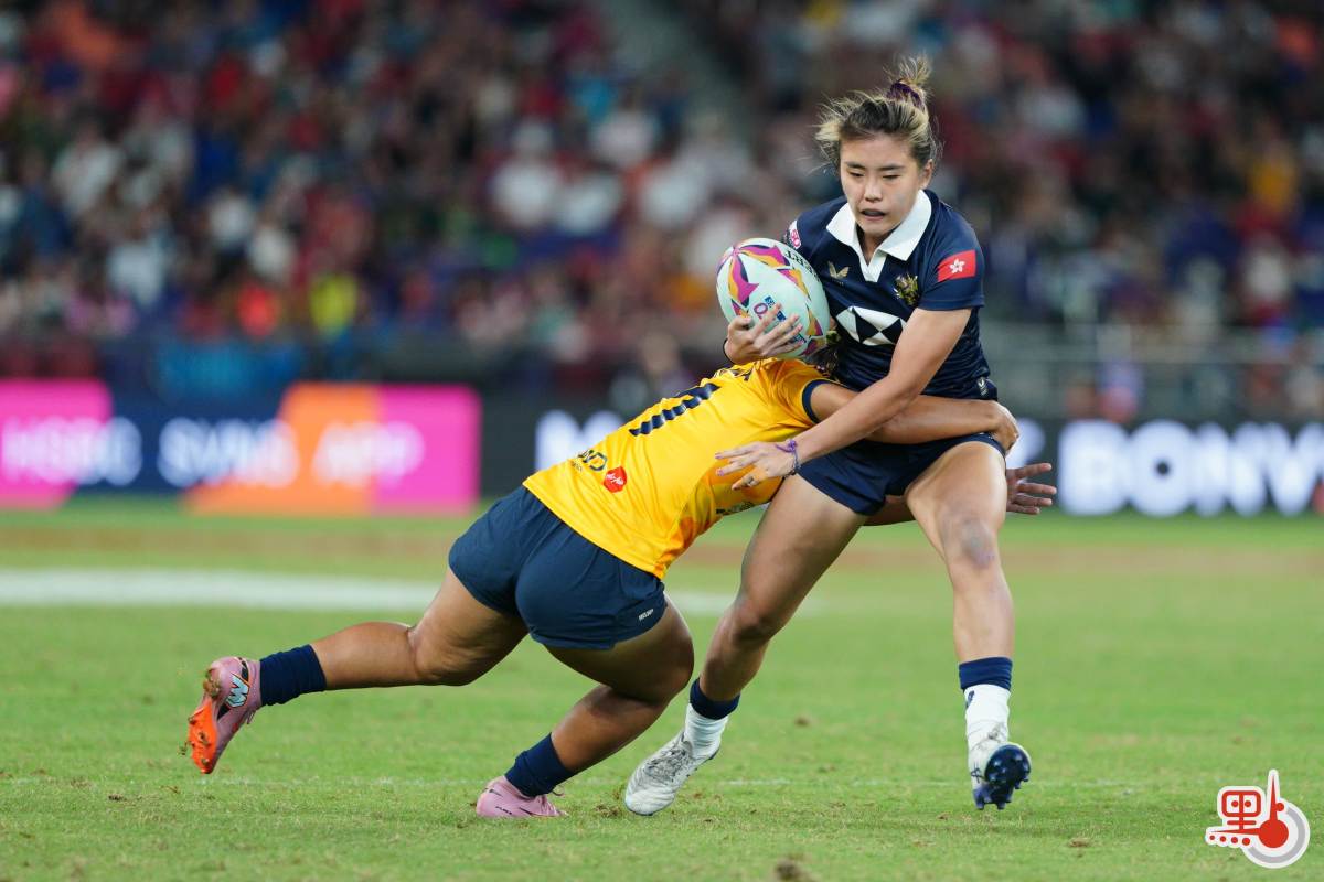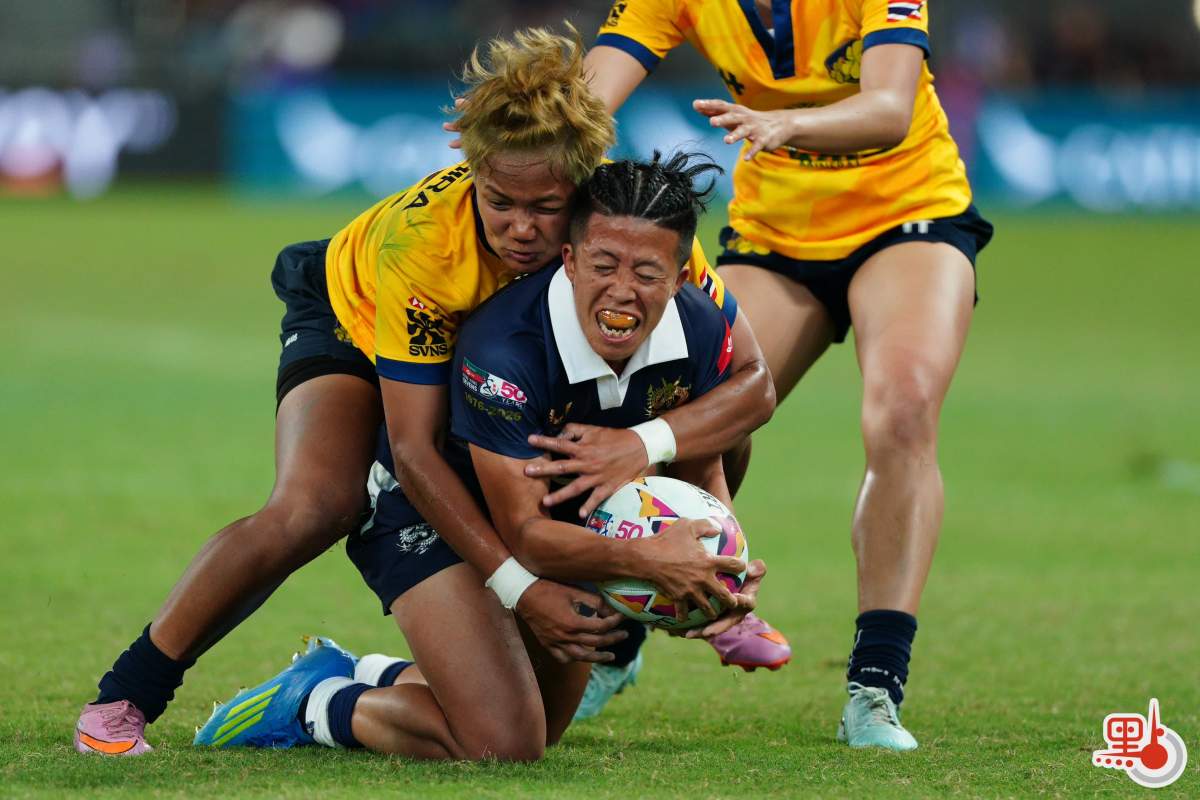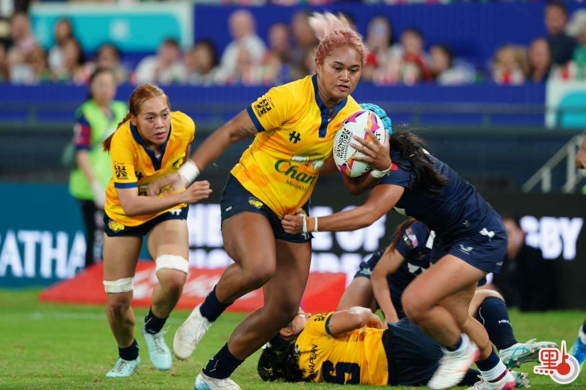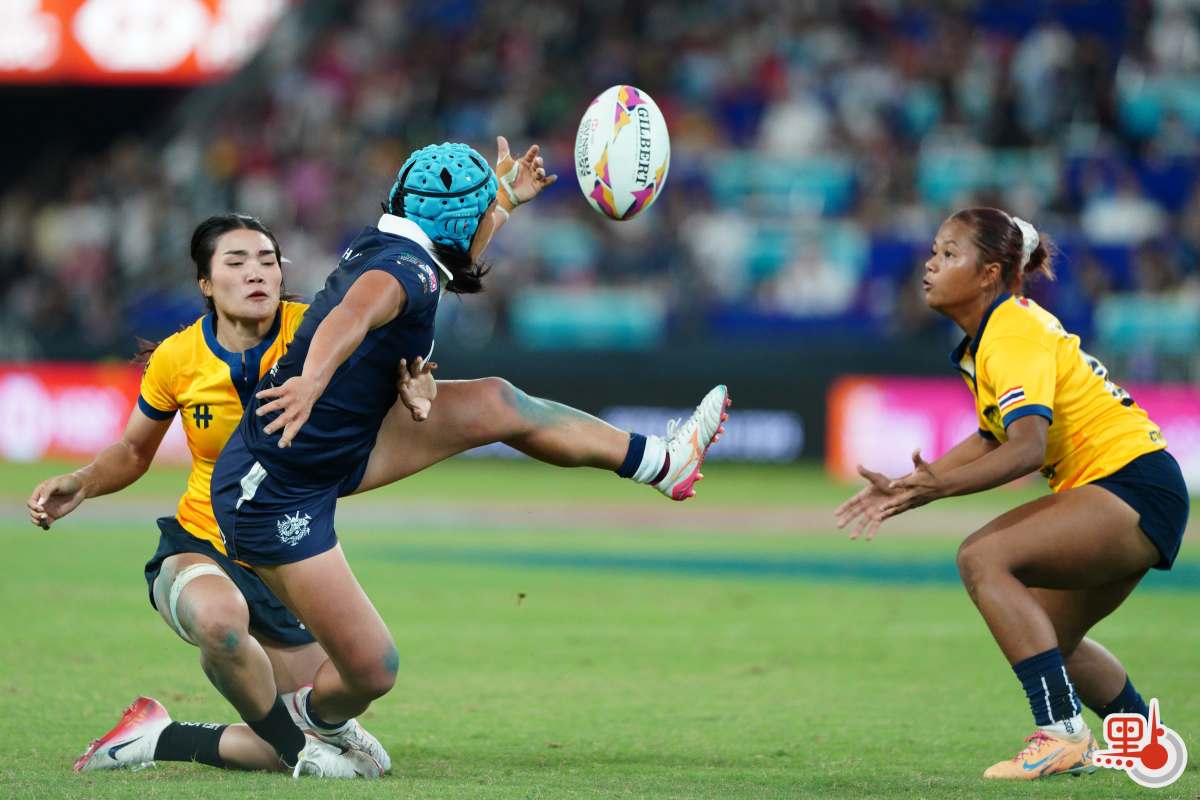 點新聞記者現場所見,在剛剛結束的女子欖球賽中,港隊以12比24不敵泰國。上半場,泰國隊早段以5比0領先,其後港隊奮起直追,將比分追至5比7。後半場港隊初段被泰國隊反超,大比分一度來到7比24,港隊苦戰將比分拉至12比24。港隊女子欖球暫時完成了所有賽事。