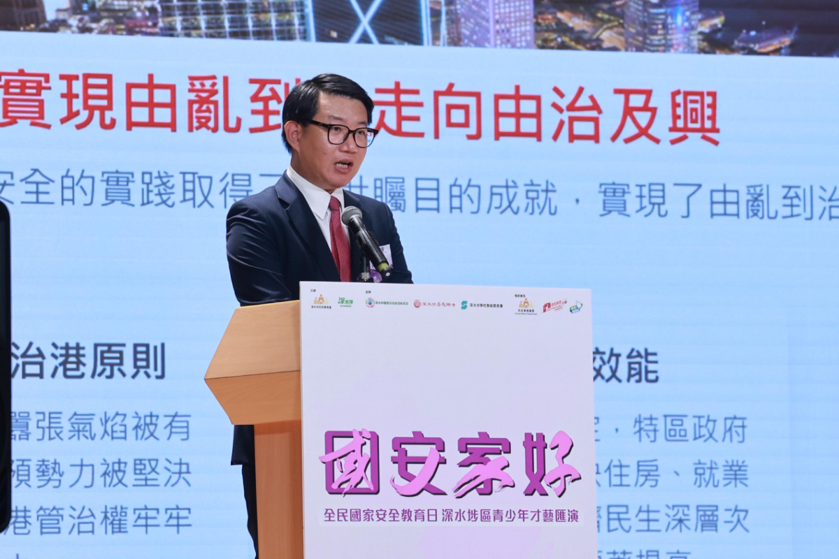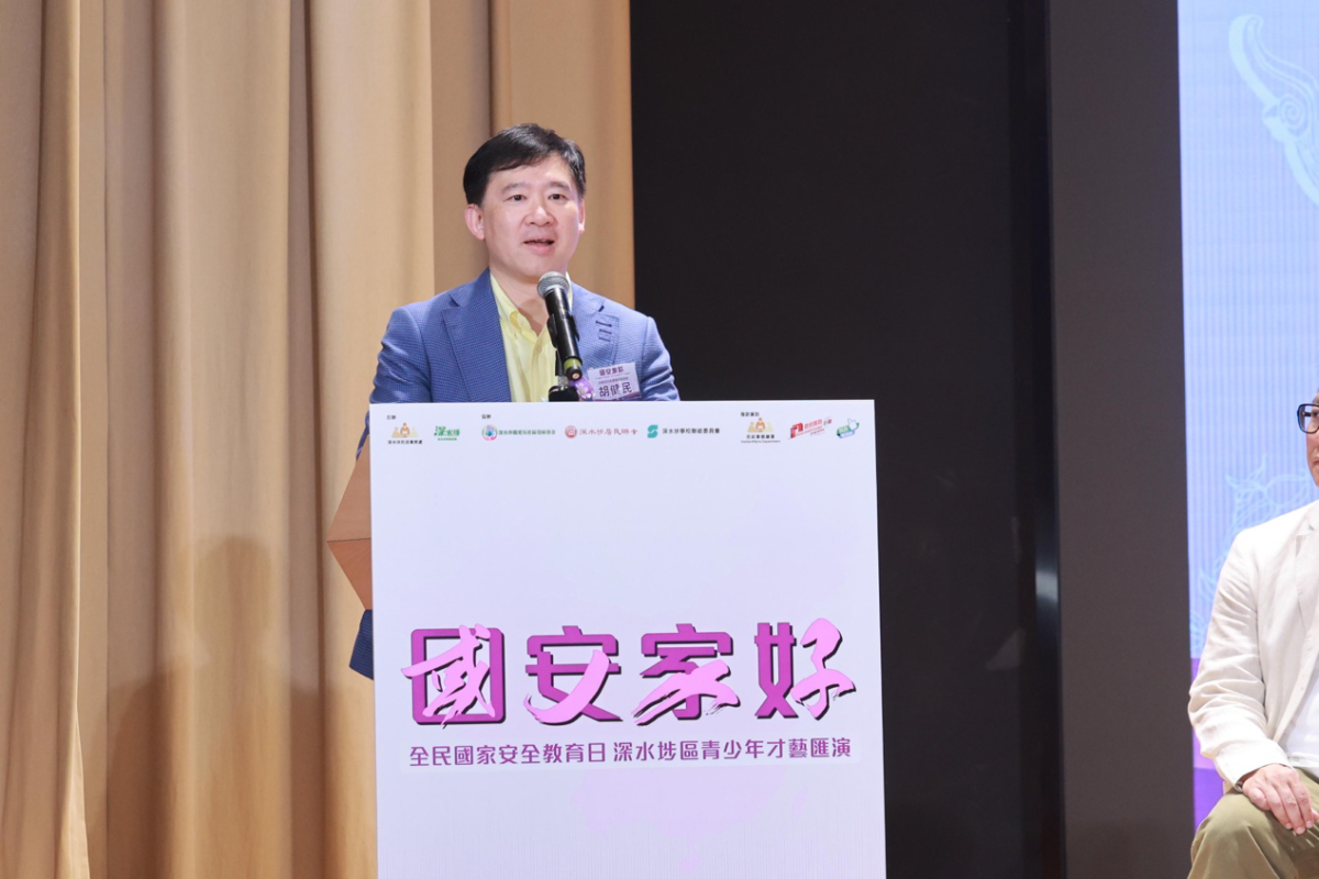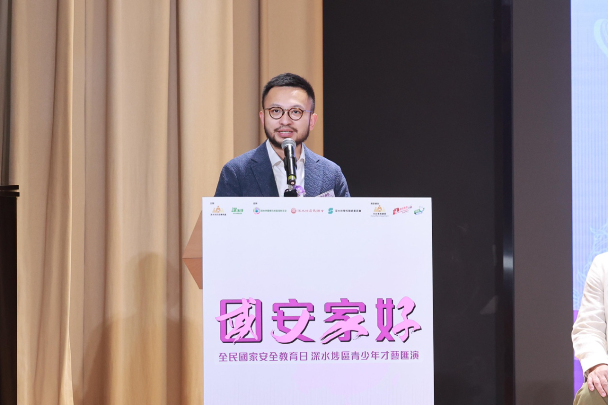 活動由英華書院的中西敲擊樂小組帶來的《龍騰虎躍》拉開序幕。王浩宇在致歡迎辭時表示,是次活動有賴地區人士、關愛隊以及學界全力支持,藉着區內青少年的才藝匯演,展示深水埗區在地區治理及國家安全教育方面的成果。他續指,深水埗區25支關愛隊堅守地區服務,全力守護社區安寧。為配合政府政策,團隊將致力提升居民及青少年的國家安全意識,助其把握「十五五」機遇。稍後,關愛隊將夥拍區內學生深入社區,傳遞國安訊息,凝聚全民共護國安的力量。