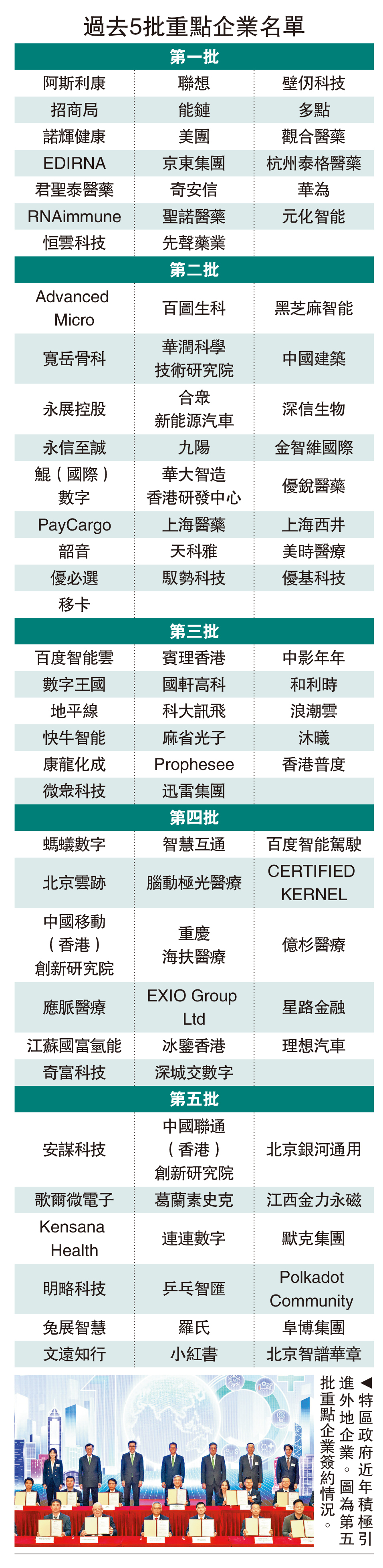 過去5批重點企業名單一圖睇