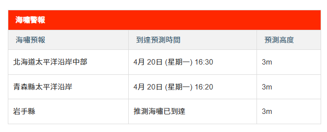 岩手縣北海道等地將受3米海嘯衝擊