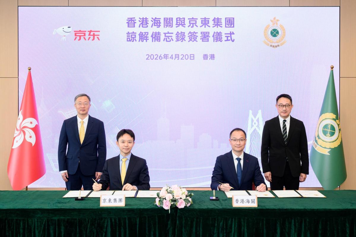 【點新聞報道】海關助理關長(情報及調查)黃浩然今日(20日)在海關關長陳子達見證下,與京東集團在海關總部大樓簽署諒解備忘錄,建立更緊密的合作關係。